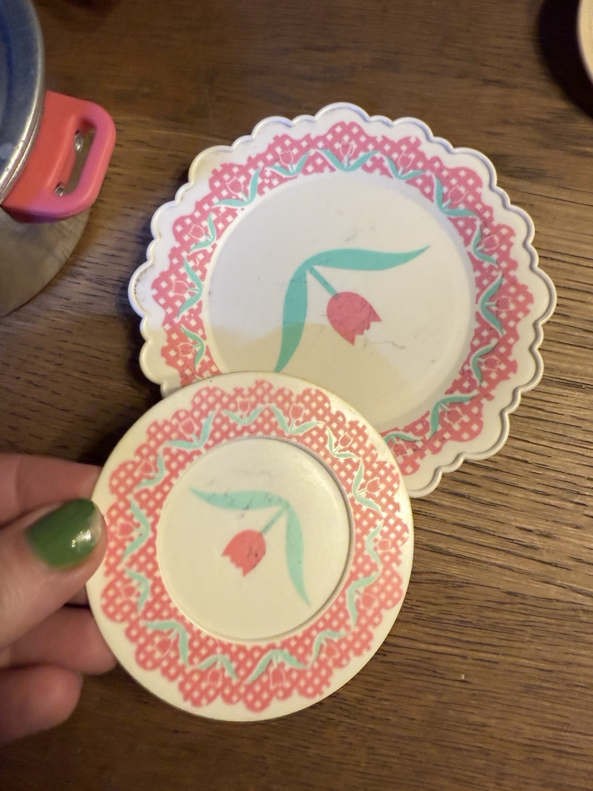 Vintage Aluminum Metal Child's Kitchen Play Pots Pans Corelle Dishes