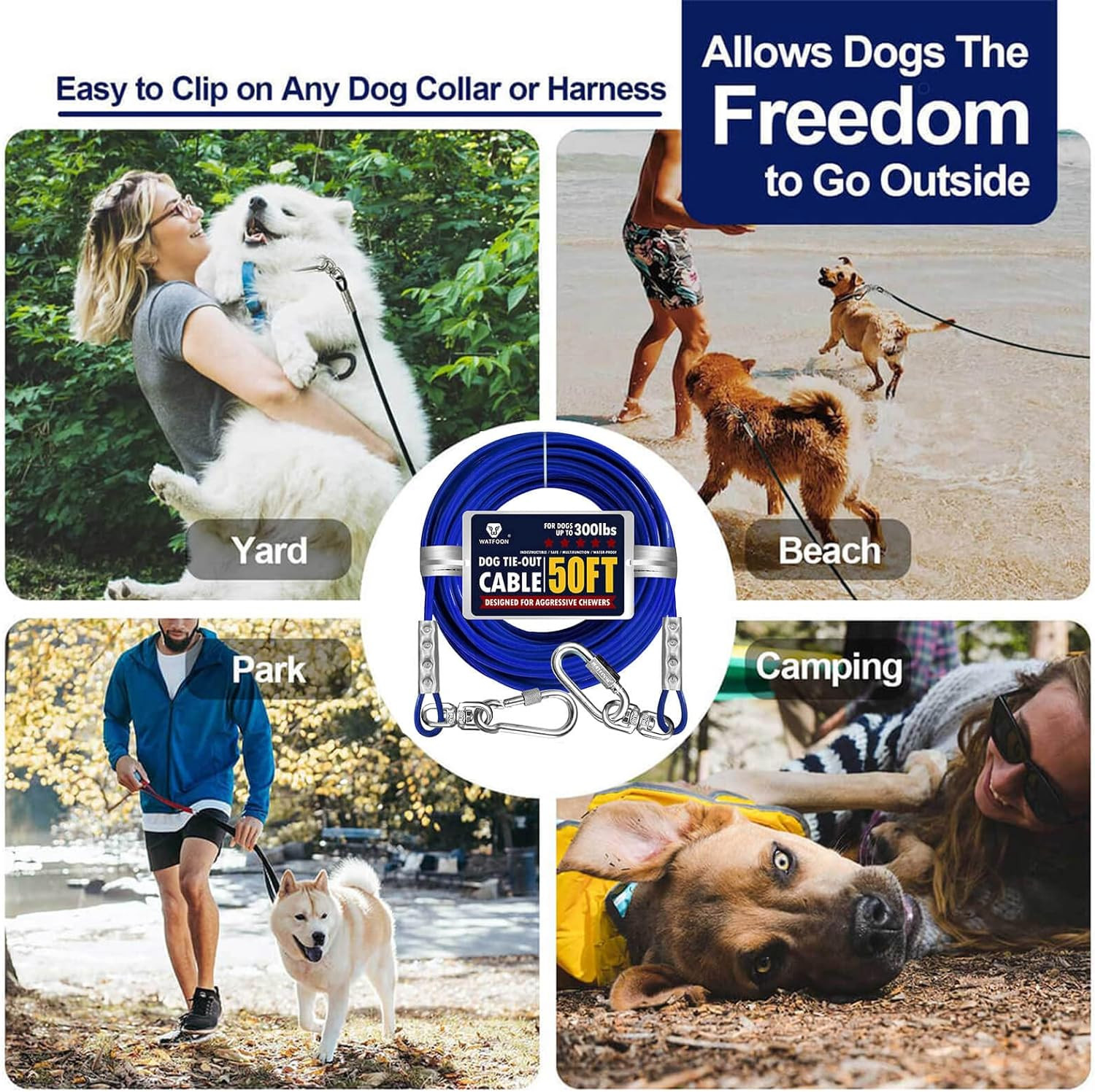 Tie Out Cable for Dogs up to 300Lbs,100Ft Extra Strong 1000Lbs Break Strength Ti