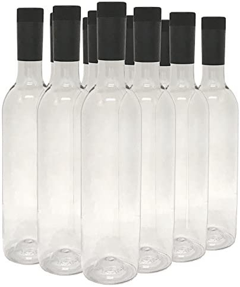 Nicebottles Plastic Wine Bottles Screw Caps, Clear, 750Ml - Pack of 12