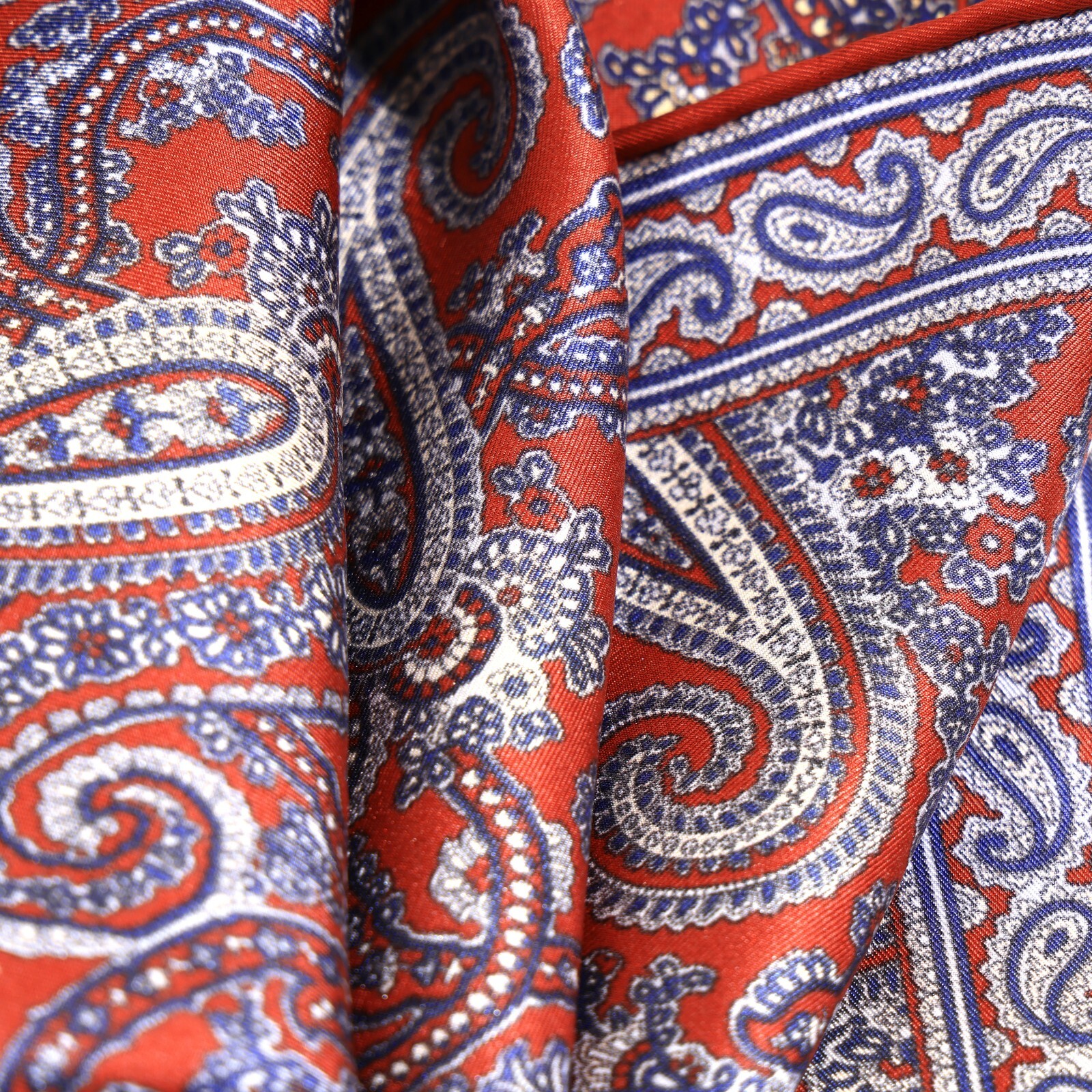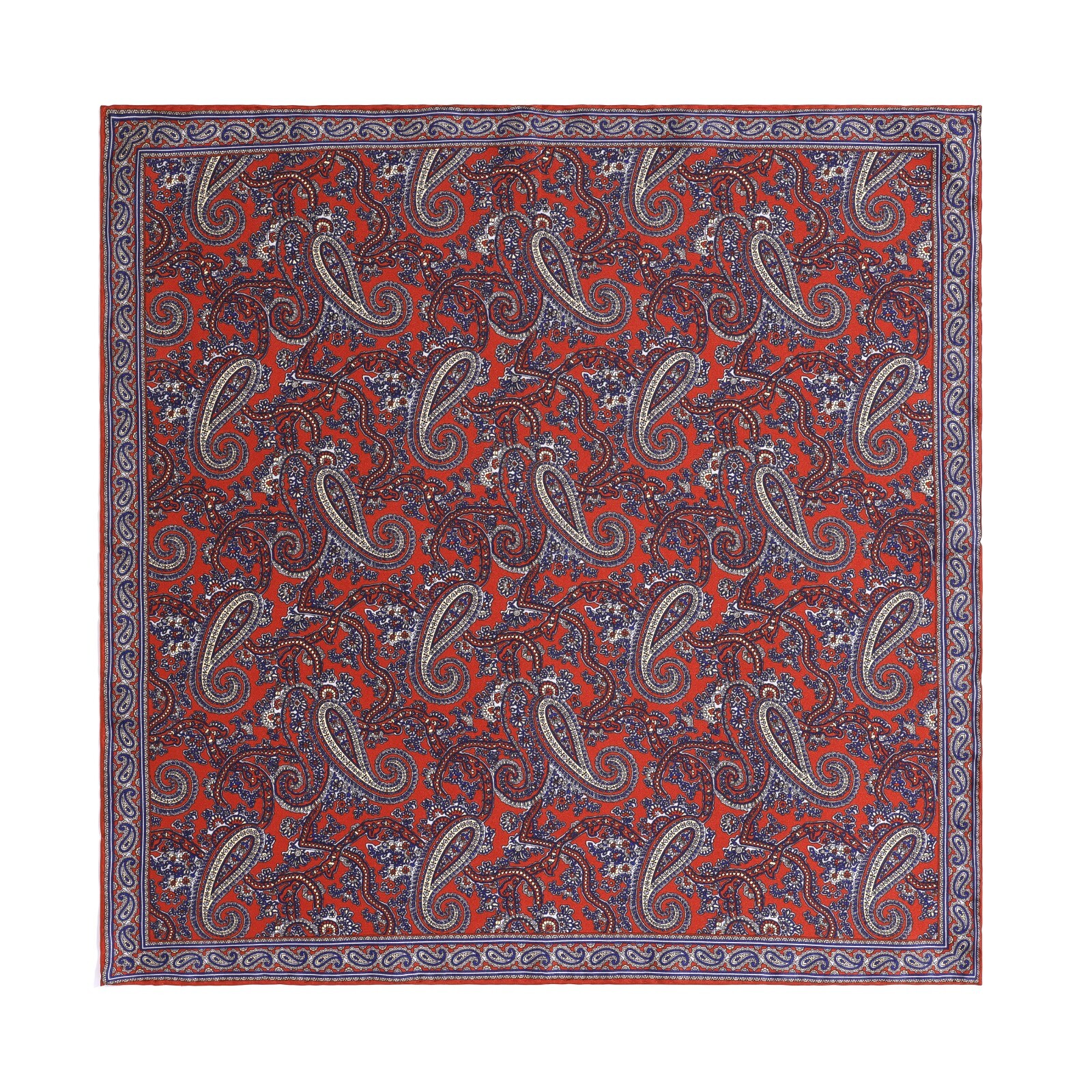 Men's 100 Silk Twill Pocket Square Red Retro Paisley Hand Rolled 21 53cm