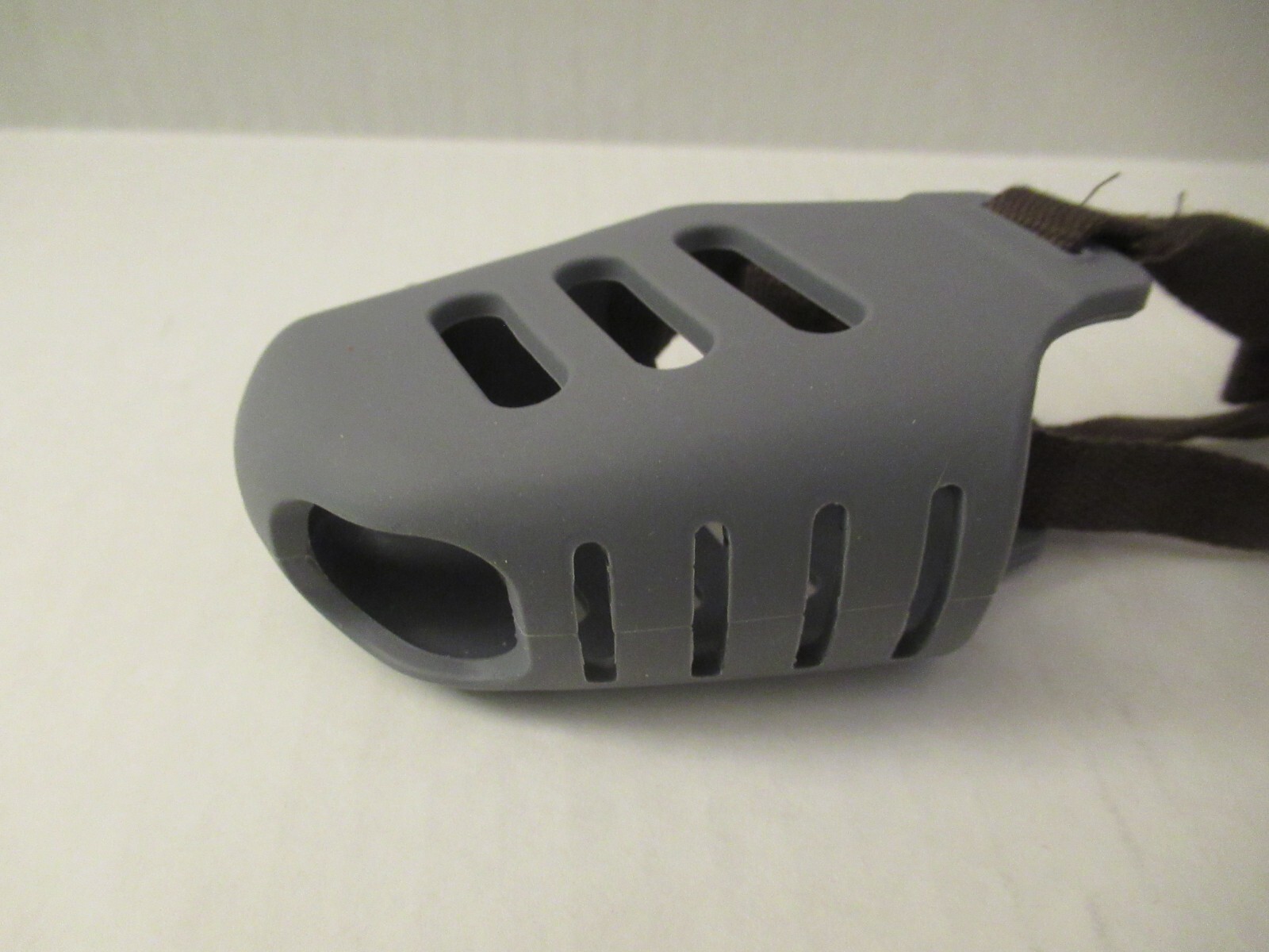 как выглядит Dog Muzzle - Silicone - Small Breed Dogs - Adjustable Head Strap - Grey - Small фото