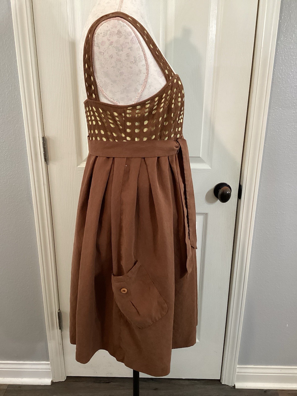 как выглядит Vintage WEST 38th Dress Brown Yellow With Side Pockets Size 10 фото
