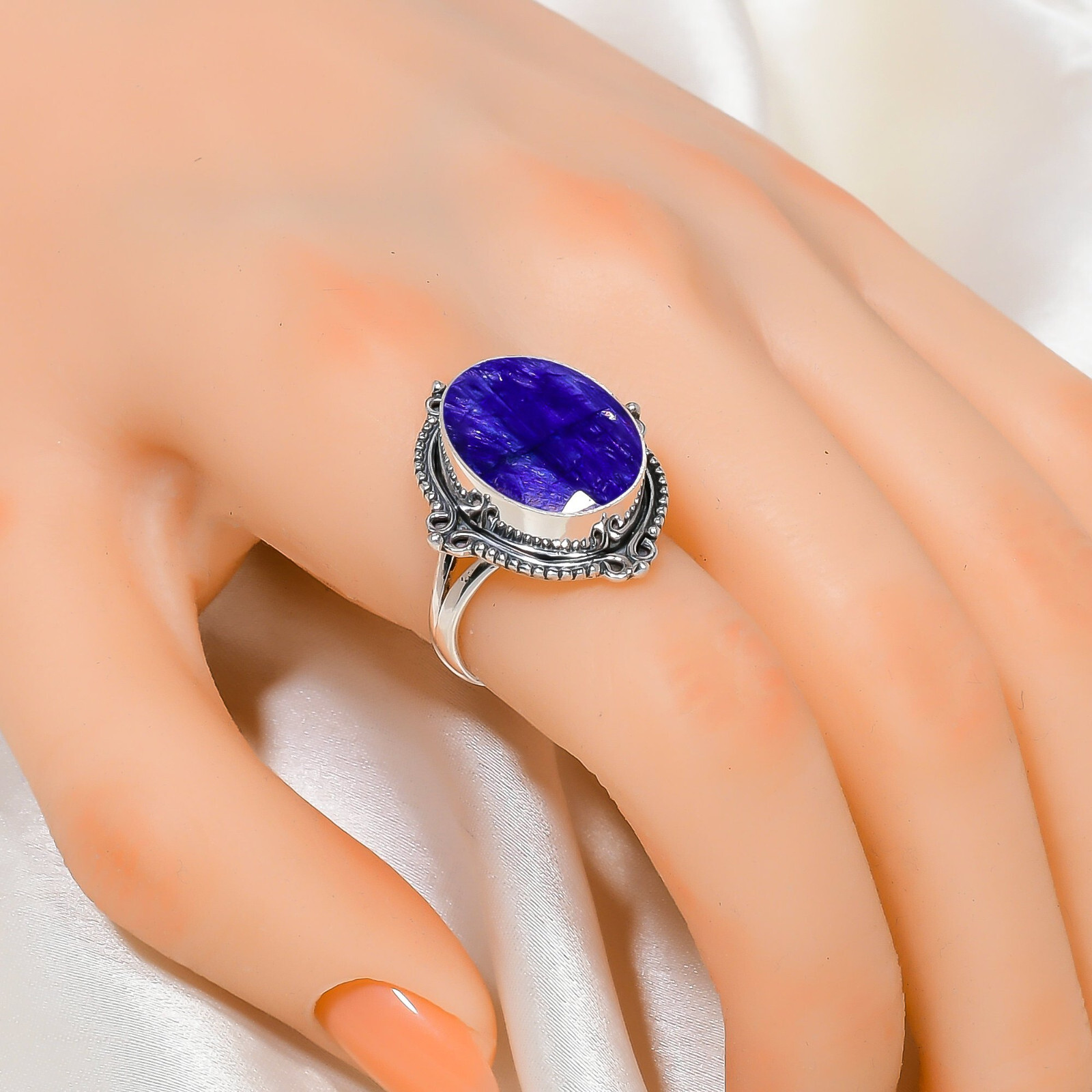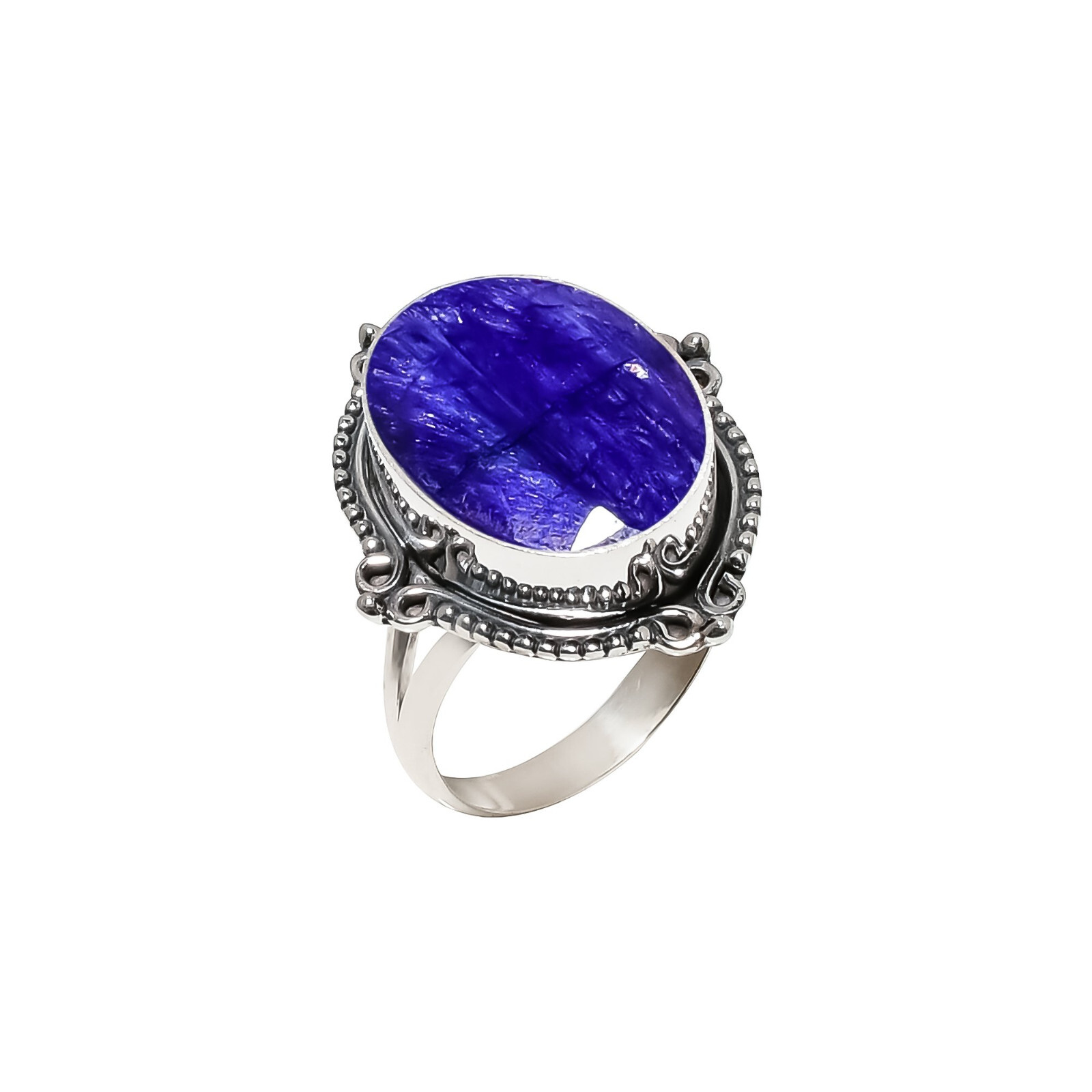 как выглядит Natural Blue Sapphire Gemstone 925 Sterling Silver Ring Oxidize Jewelry Gift. фото