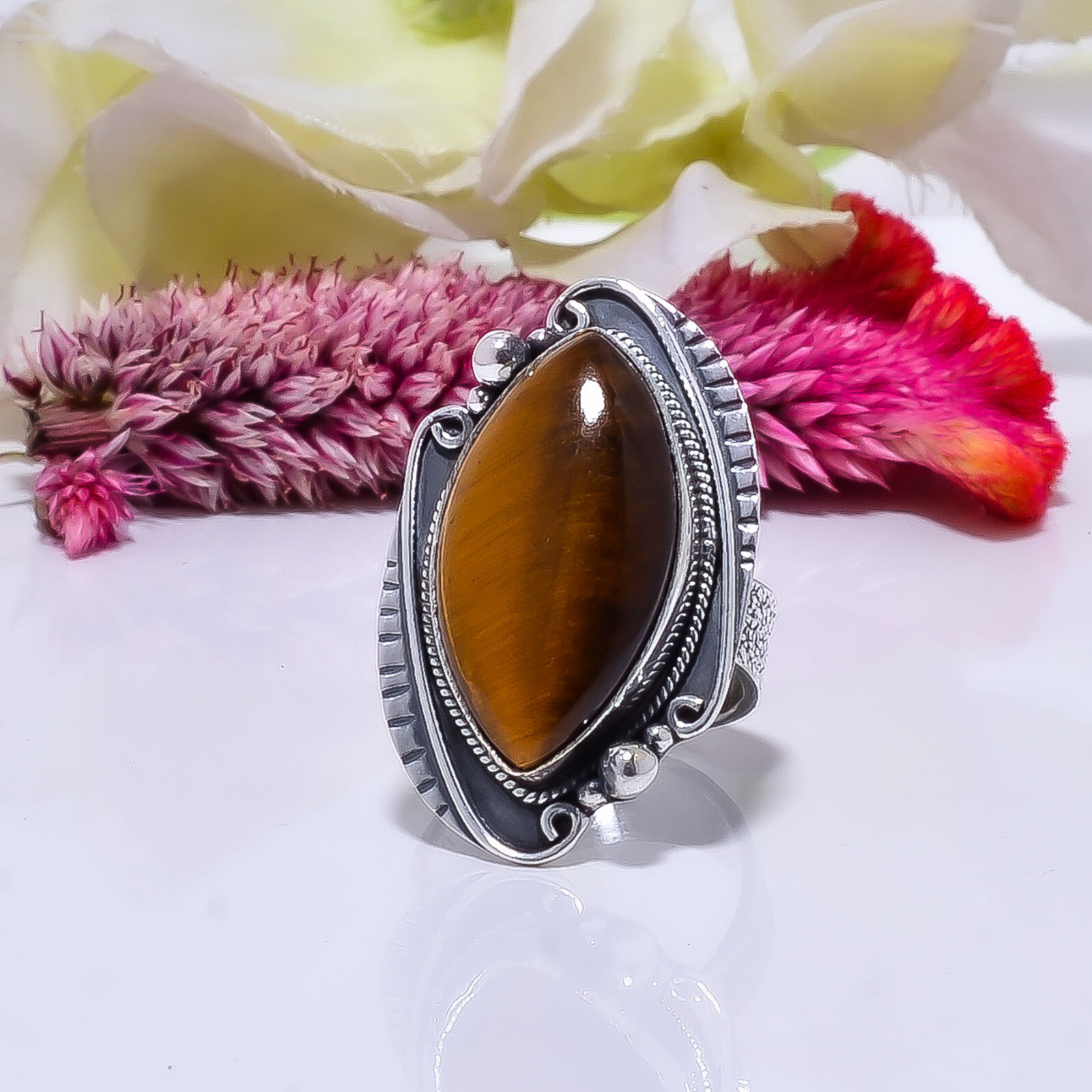 Natural Tiger's Eye Gemstone 925 Sterling Silver Ring Oxidize Jewelry Gift.