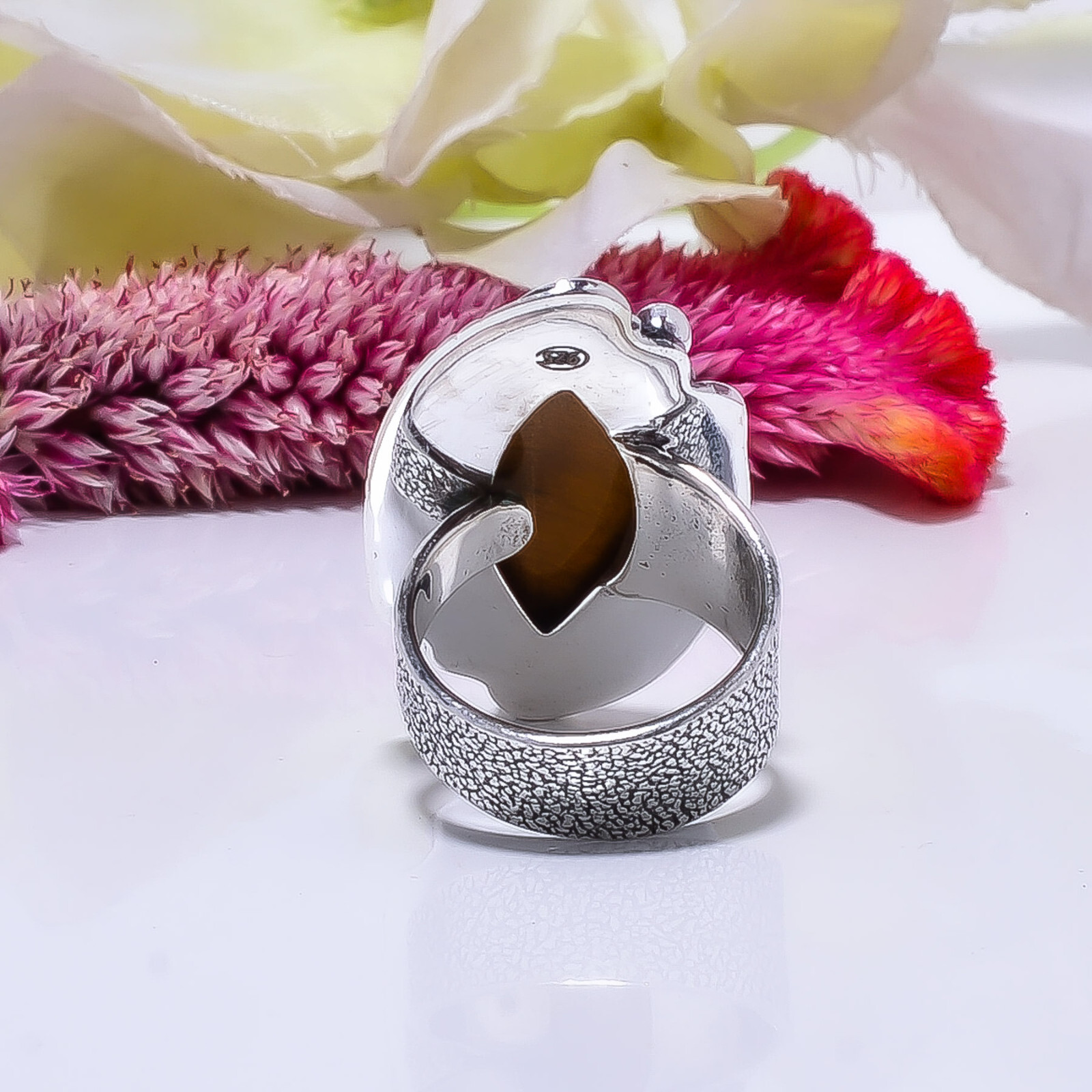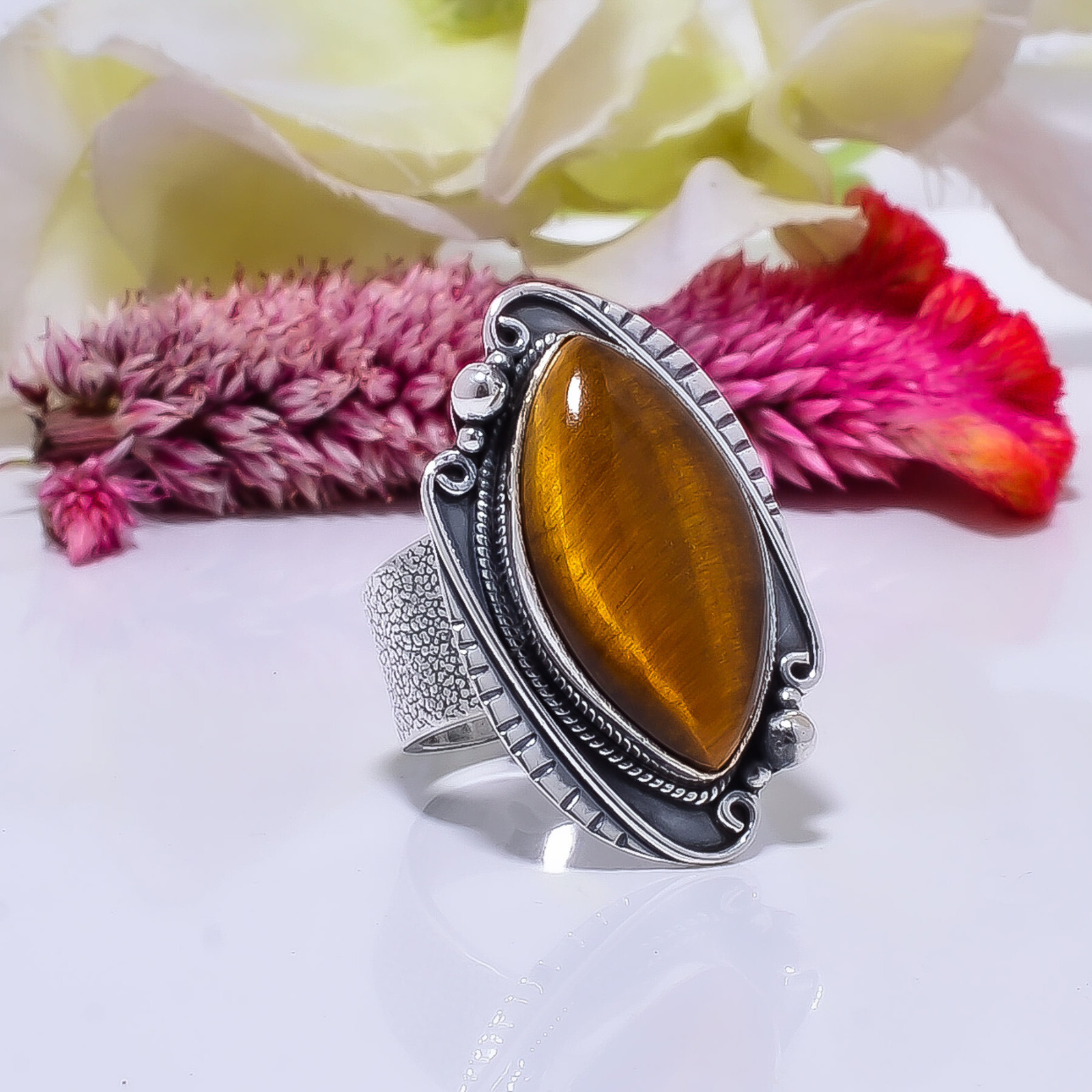 как выглядит Natural Tigers Eye Gemstone 925 Sterling Silver Ring Oxidize Jewelry Gift. фото