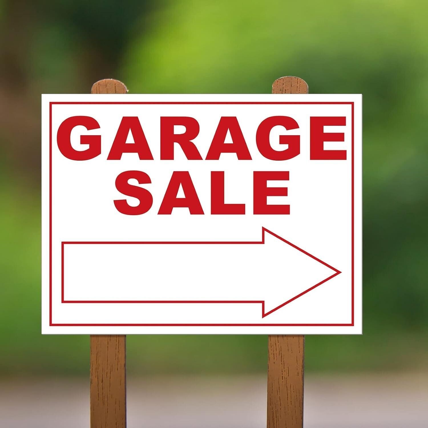 как выглядит 3pcs Garage Sale Sign with Metal Stakes 12 X 16 Inch Double Sided Yard Sale Sign фото