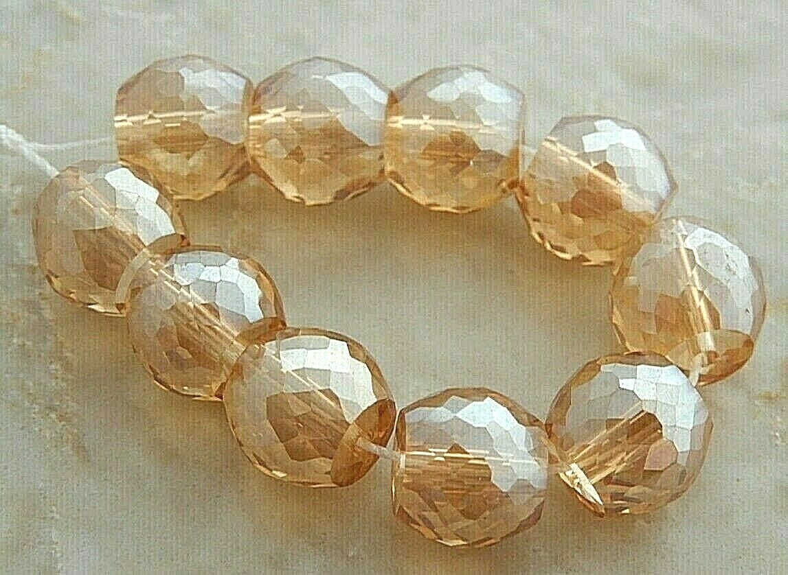 10 Gem Cut Crystals Champagne AB 9x8mm Faceted Barrel Squat Round Rondelle Beads