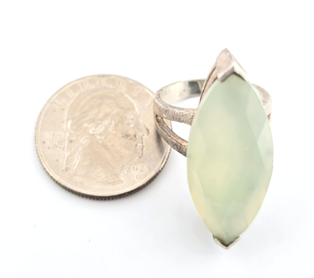 как выглядит Sterling Silver 925 Pale Green Chalcedony Marquise Cut Full Finger Ring Sz 8 фото