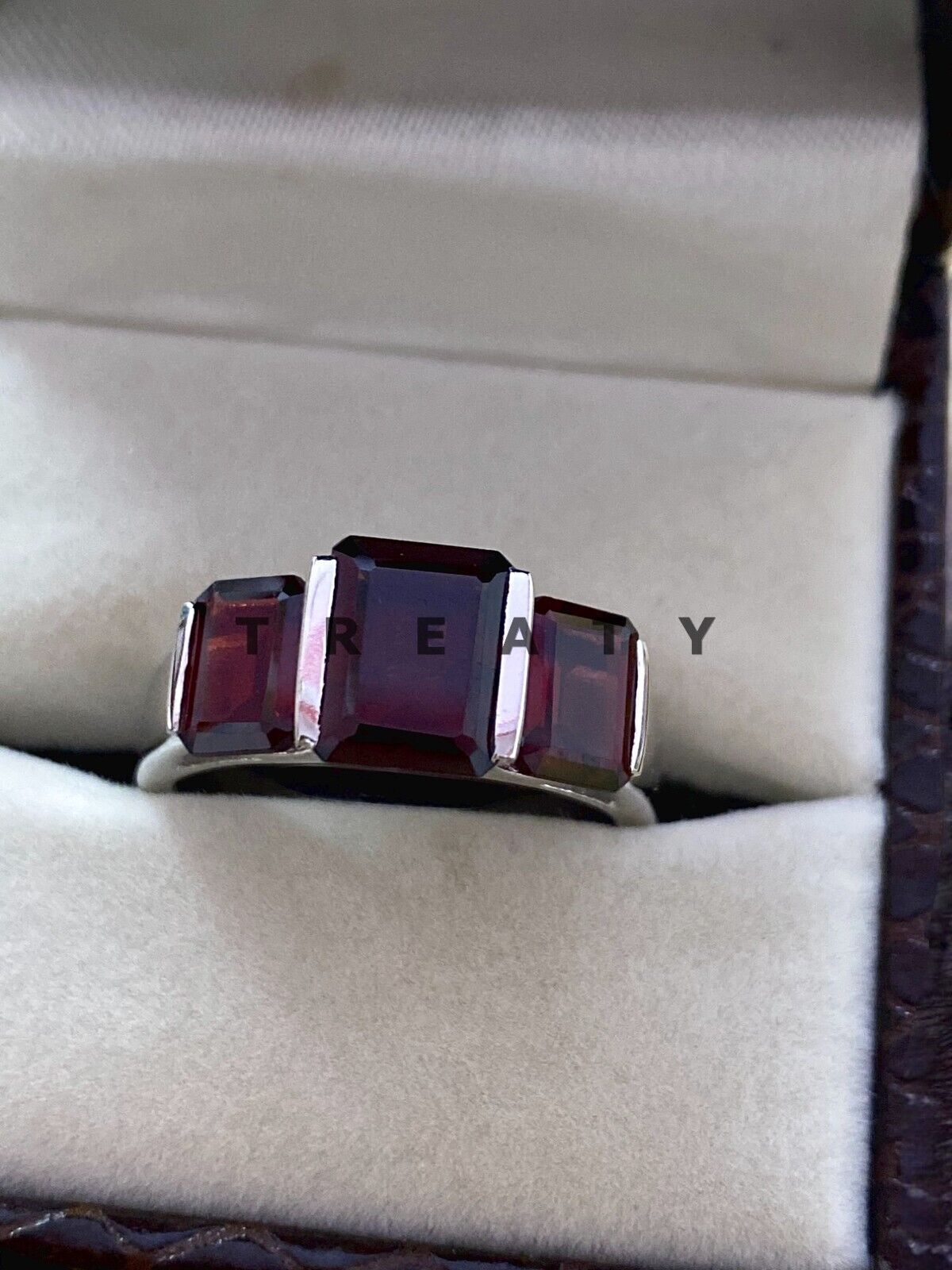 как выглядит Garnet Emerald Cut Gemstone With 925 Sterling Silver Ring For Men