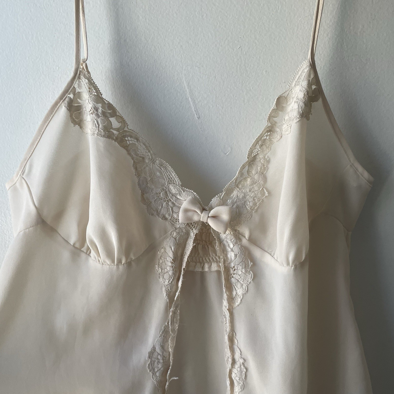 как выглядит Victoria s Secret Gold Label Vintage Elegant Cream Lace Trim Chemise Lingerie фото