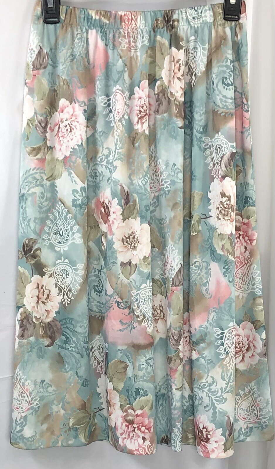 Vintage Silky S skirt 24 Elastic Waist blue floral Fairy Whimsy Romantic