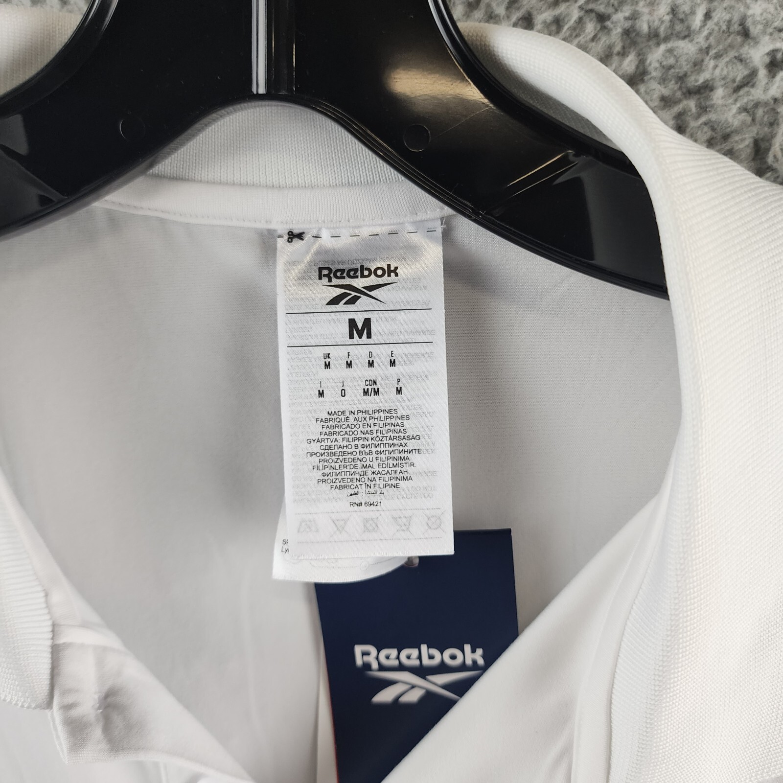 как выглядит Reebok Short Sleeve Performance Training Polo Shirt Mens Medium White Pullover фото