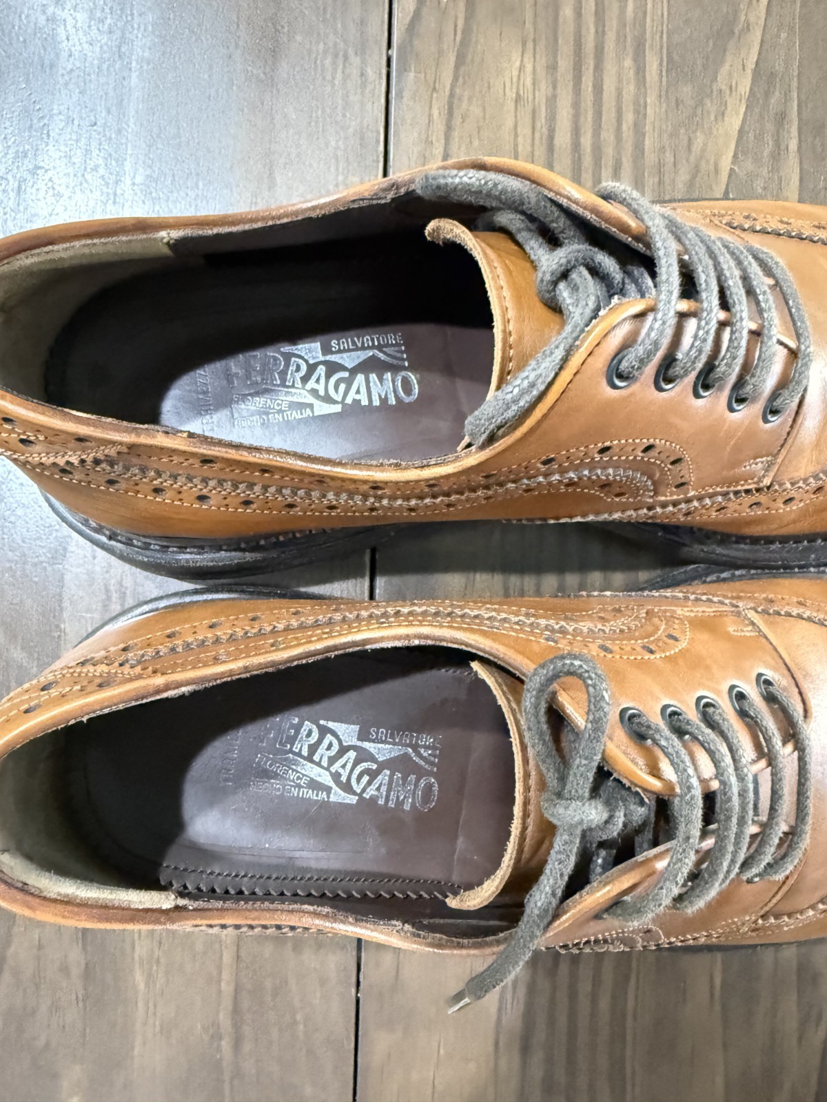 Salvatore Ferragamo Boston Men Leather Oxford Shoes Brown 7.5 EE