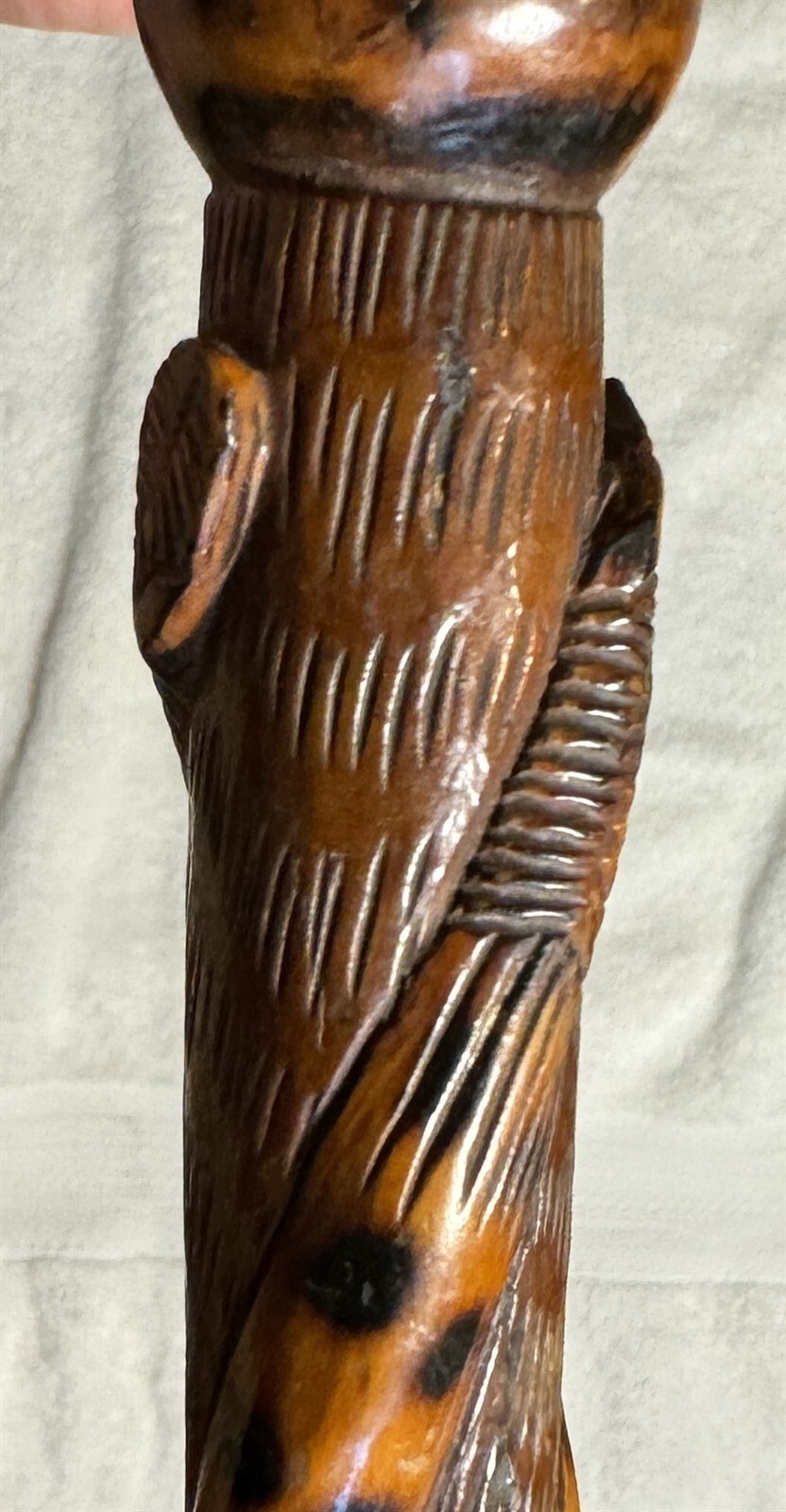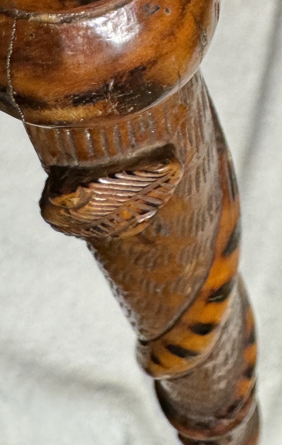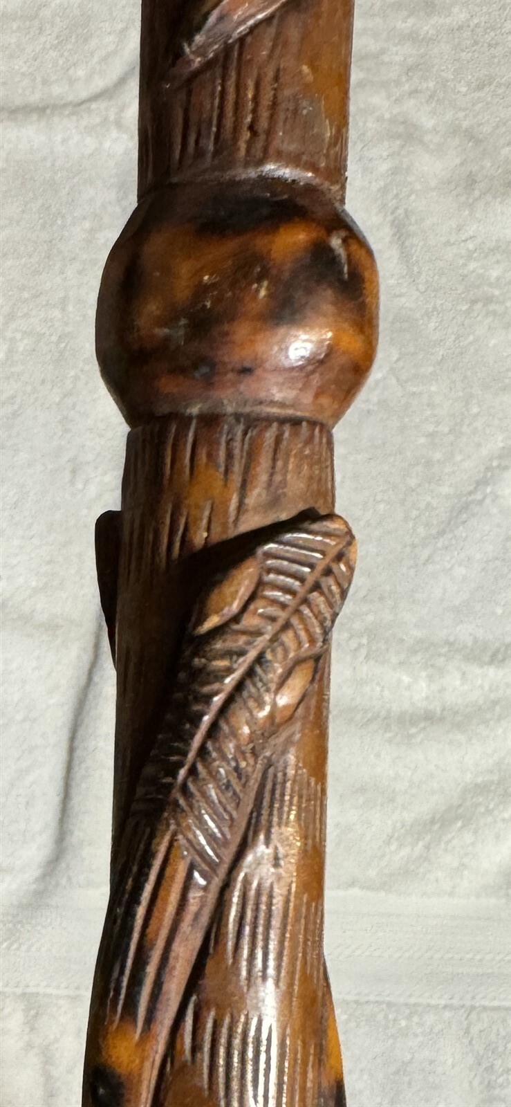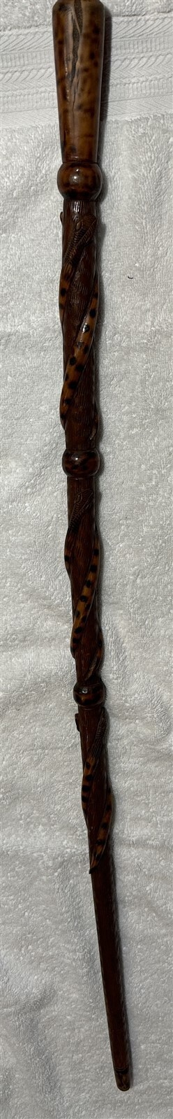 Vintage 35 Inch Snake Wood Walking Stick with 6 Carved Snakes Cane