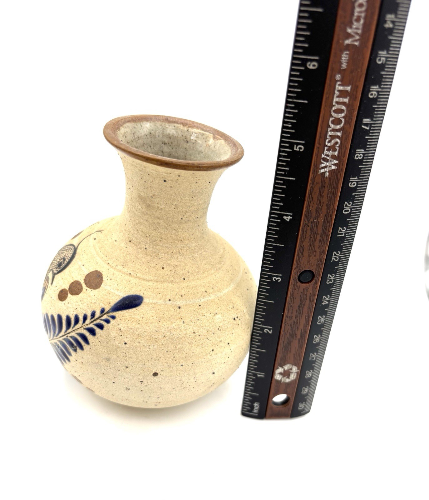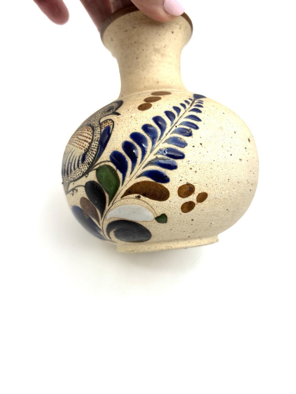Vintage Mexican Folk Art Pottery Vase Talavera Tonala Bird And Leaves 5 Tall