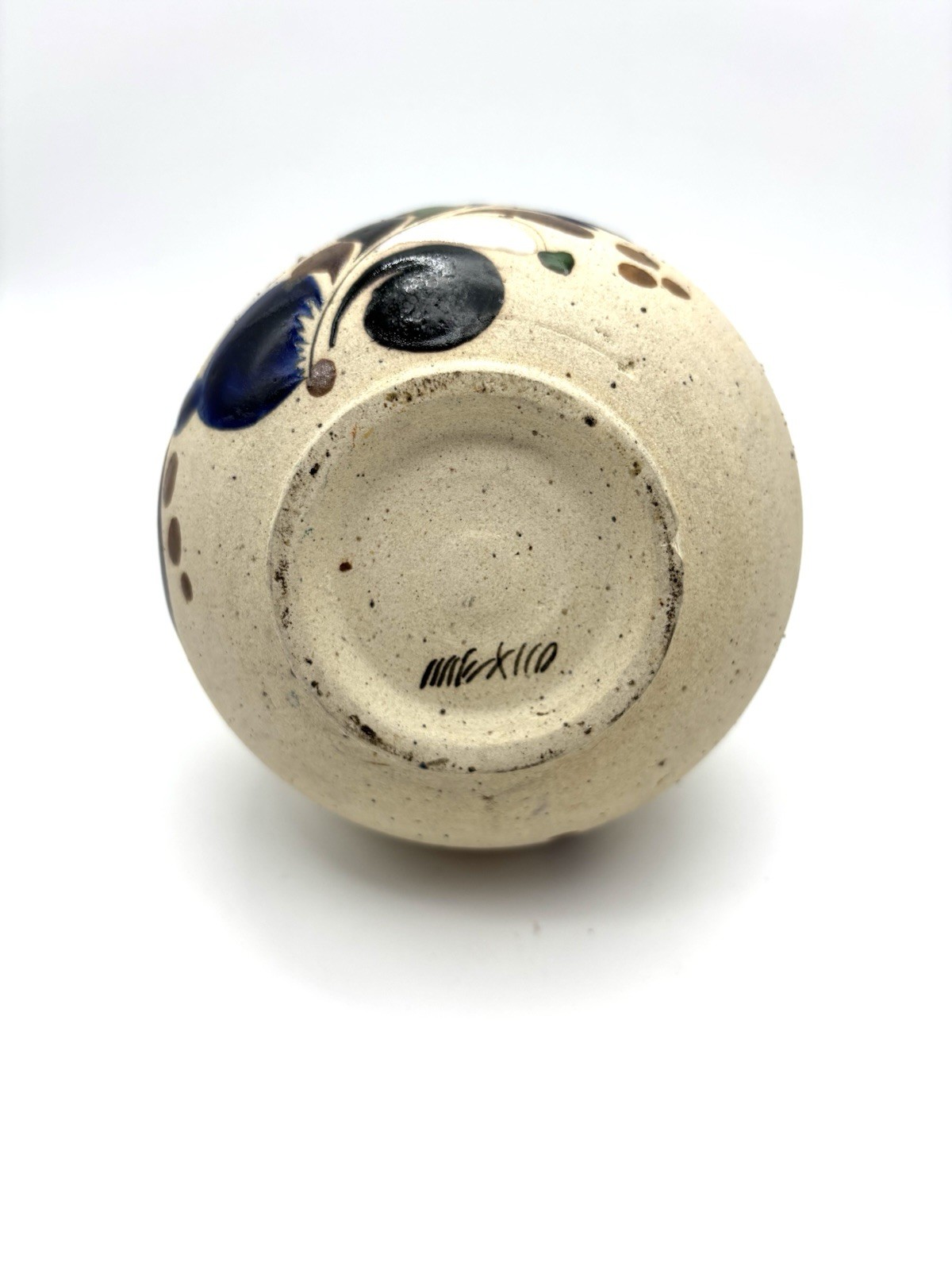 • Vintage Mexican Folk Art Pottery Vase Talavera Tonala Bird And Leaves 5 Tall