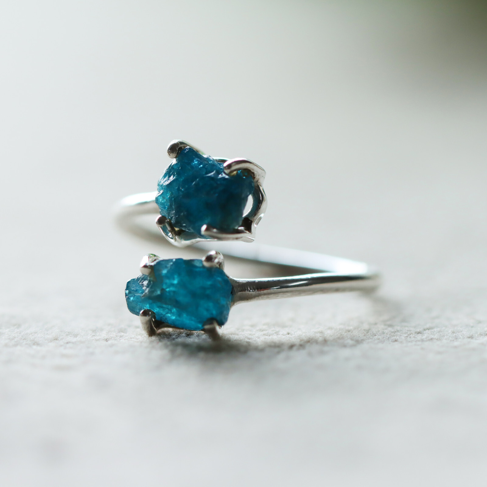 Raw Apatite Gemstone Ring 925 Silver Adjustable Ring Handmade Women Ring