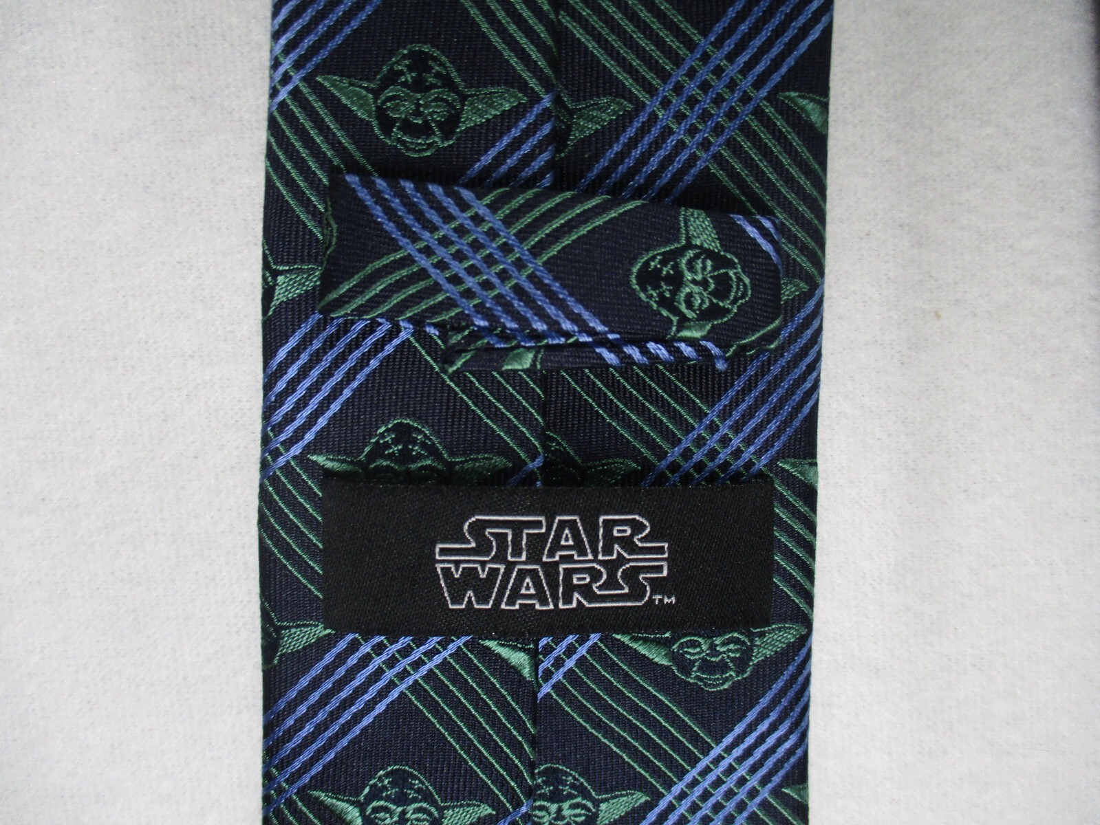 как выглядит Star Wars Green/Blue/Black Yoda Geometric Pattern Narrow Silk Tie 60" L 3" W фото