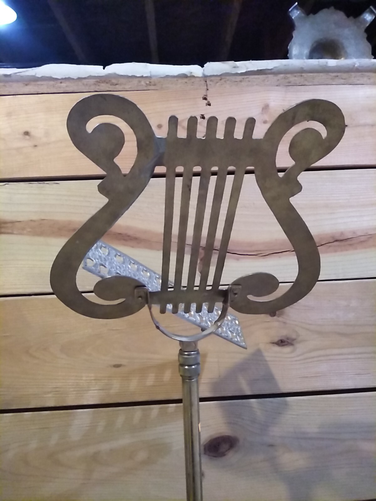 Vintage Brass/Metal Lyre Harp Shaped Footed Music Stand Adjust 36 To 49