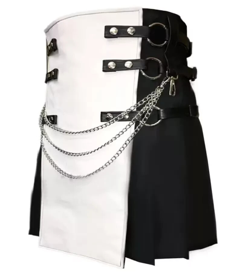 Men's Scottish Tactical Kilt Black white Hybrid Cotton Kilt for Men