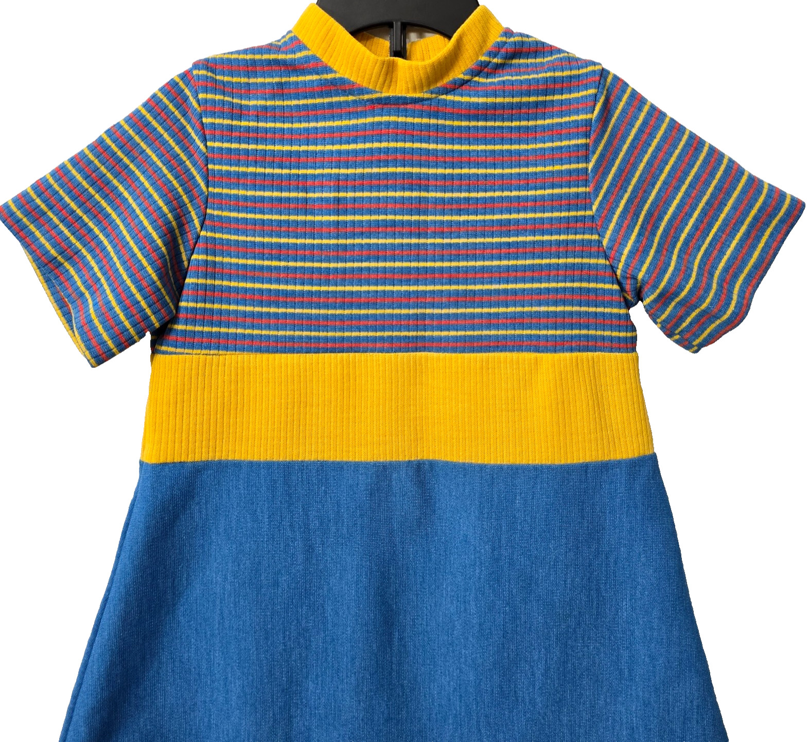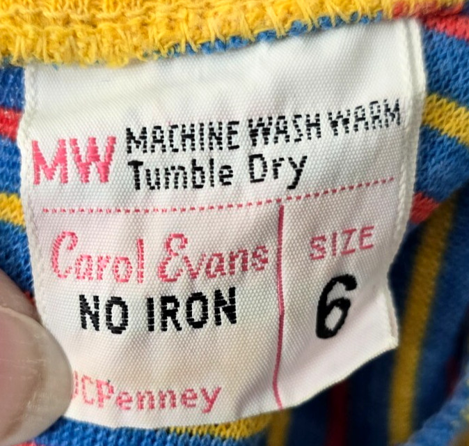 как выглядит Vintage JC Penney Knit Dress 6 Girl Short Sleeve Moc Neck Stripe 70s Carol Evans фото