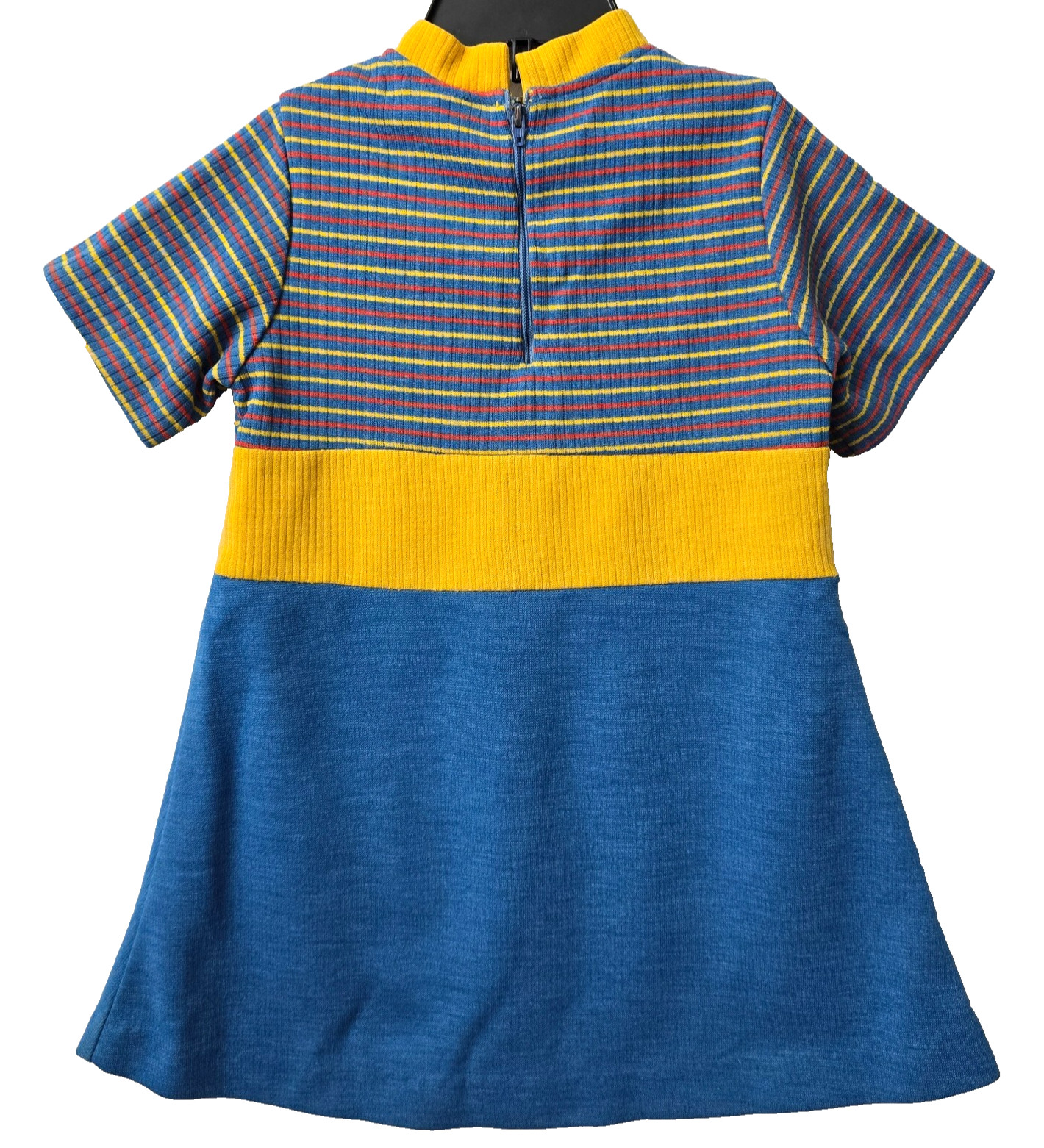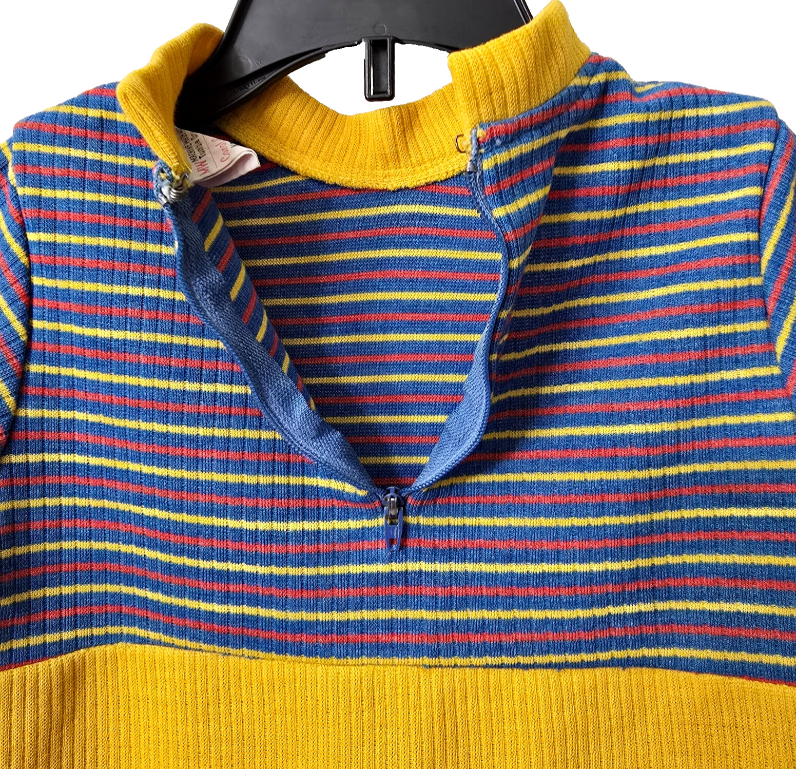 Vintage JC Penney Knit Dress 6 Girl Short Sleeve Moc Neck Stripe 70s Carol Evans