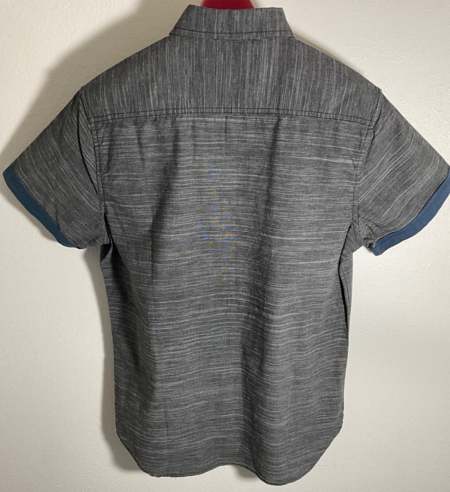 Pd C Mens Stretch Short Sleeve Button-Up Shirt M Gray Cotton/Polyester