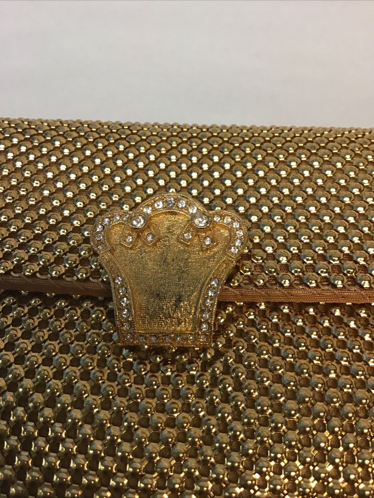 Vintage Whiting And Davis Cream/Gold Accent Mesh Clutch