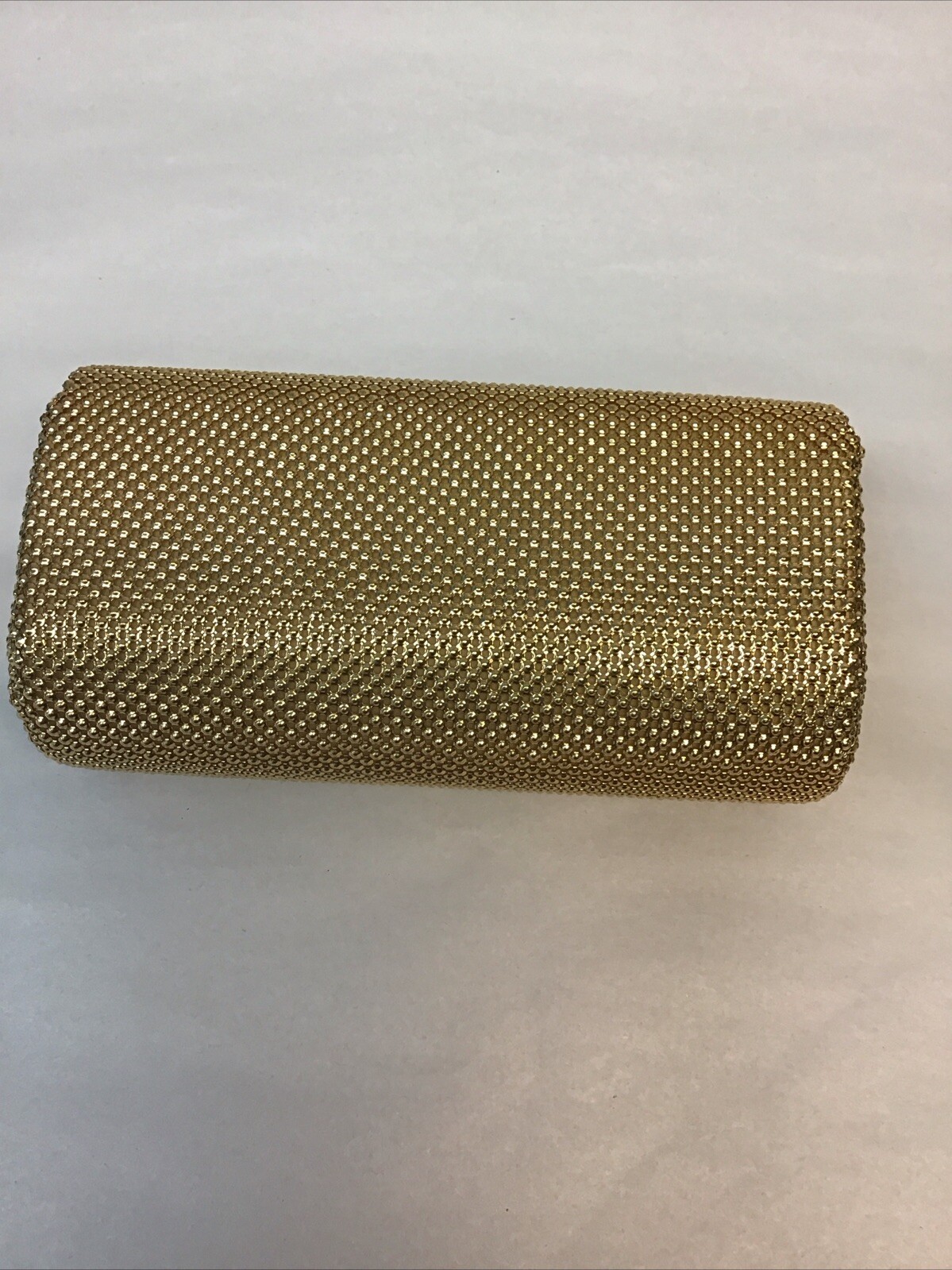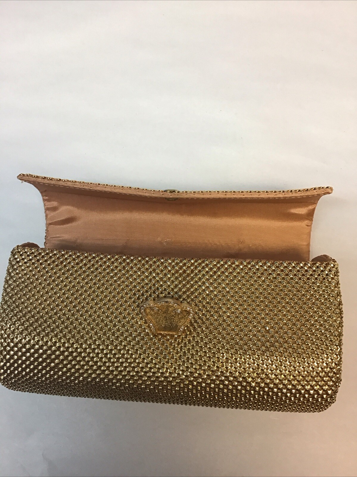 как выглядит Vintage Whiting And Davis Cream/Gold Accent Mesh Clutch фото