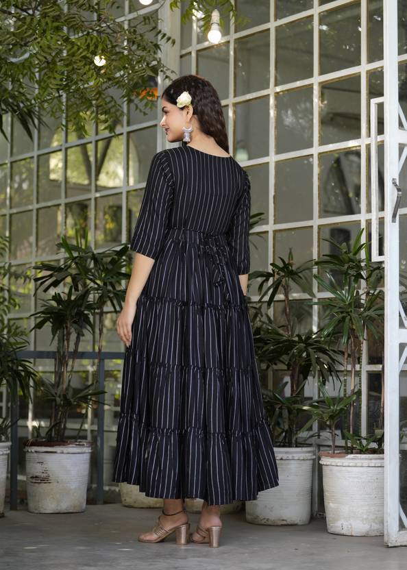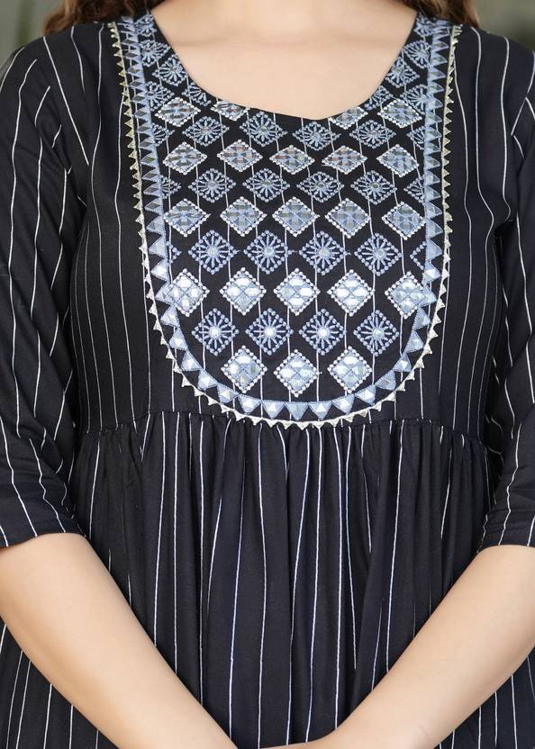 Indian Women black rayon Embroidered Anarkali flared Kurta Kurti beautiful Dress
