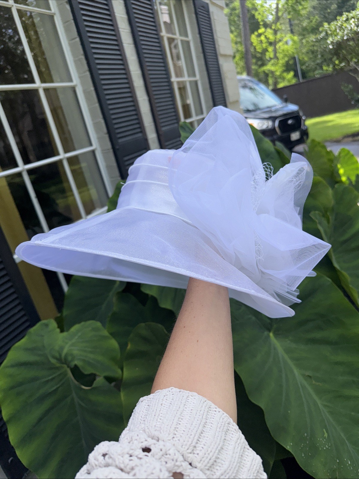 как выглядит Kentucky Derby Women s Hat Horse All White Organza Feather Tea Party 21 Inches фото