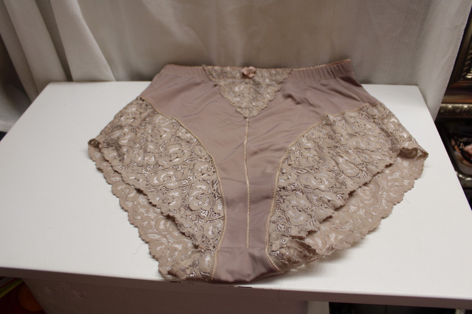 Vintage Sissy High-Waist Tummy Control Girdle Shapewear Lace Bow Briefs Rose XL