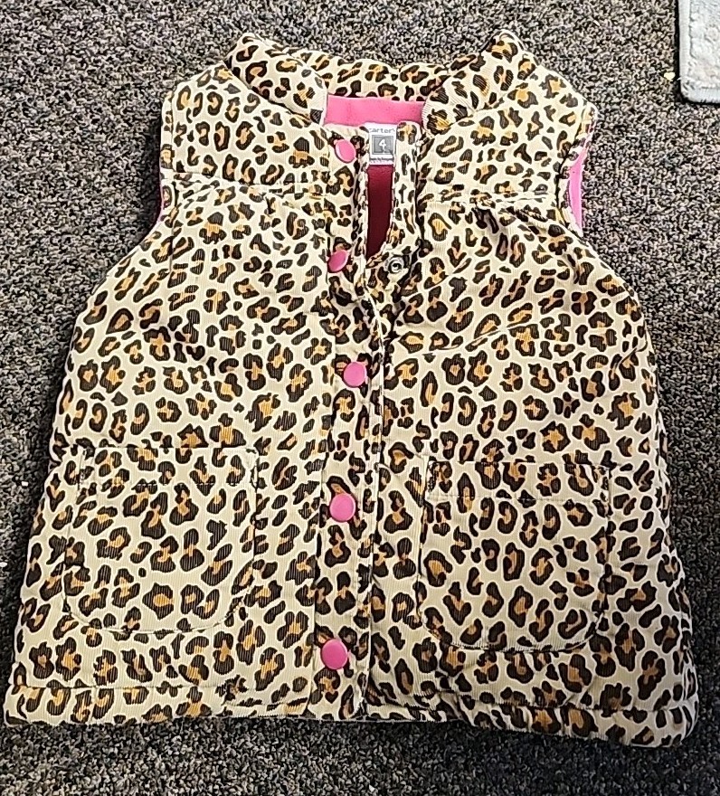 как выглядит Carters Girls Size 4 Camel Animal Print Cord Fleece Lined Vest фото