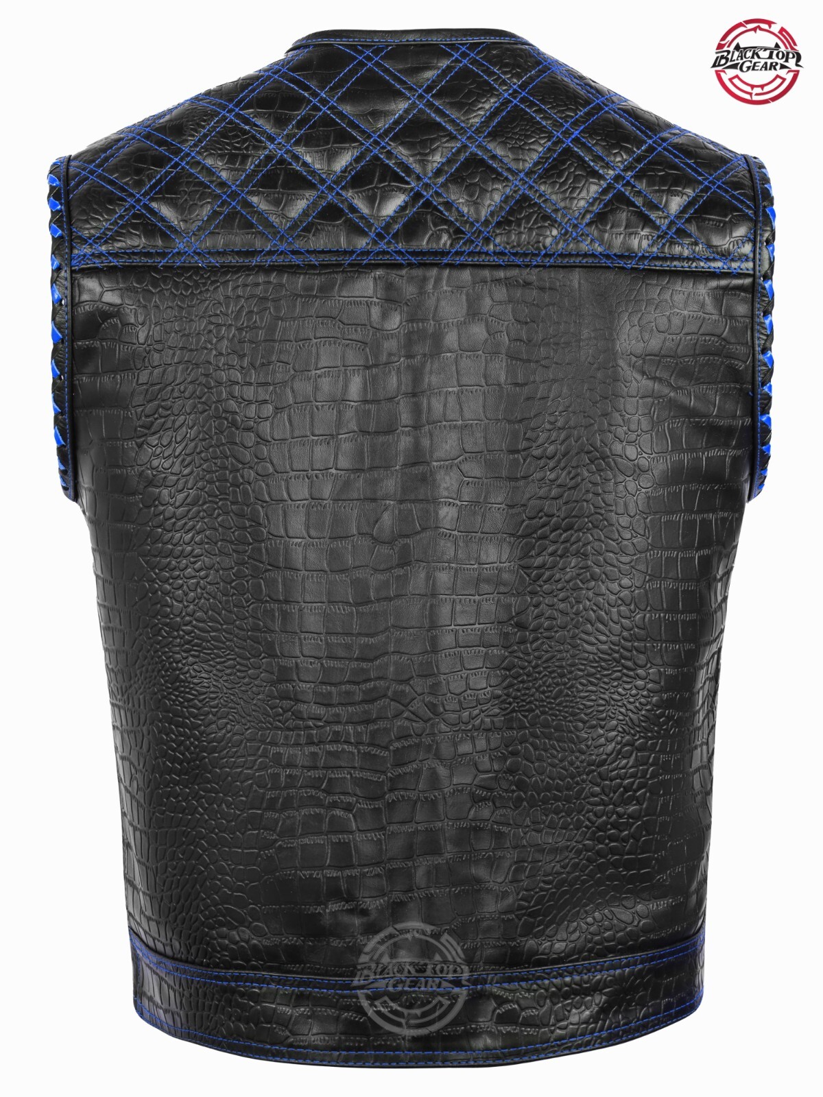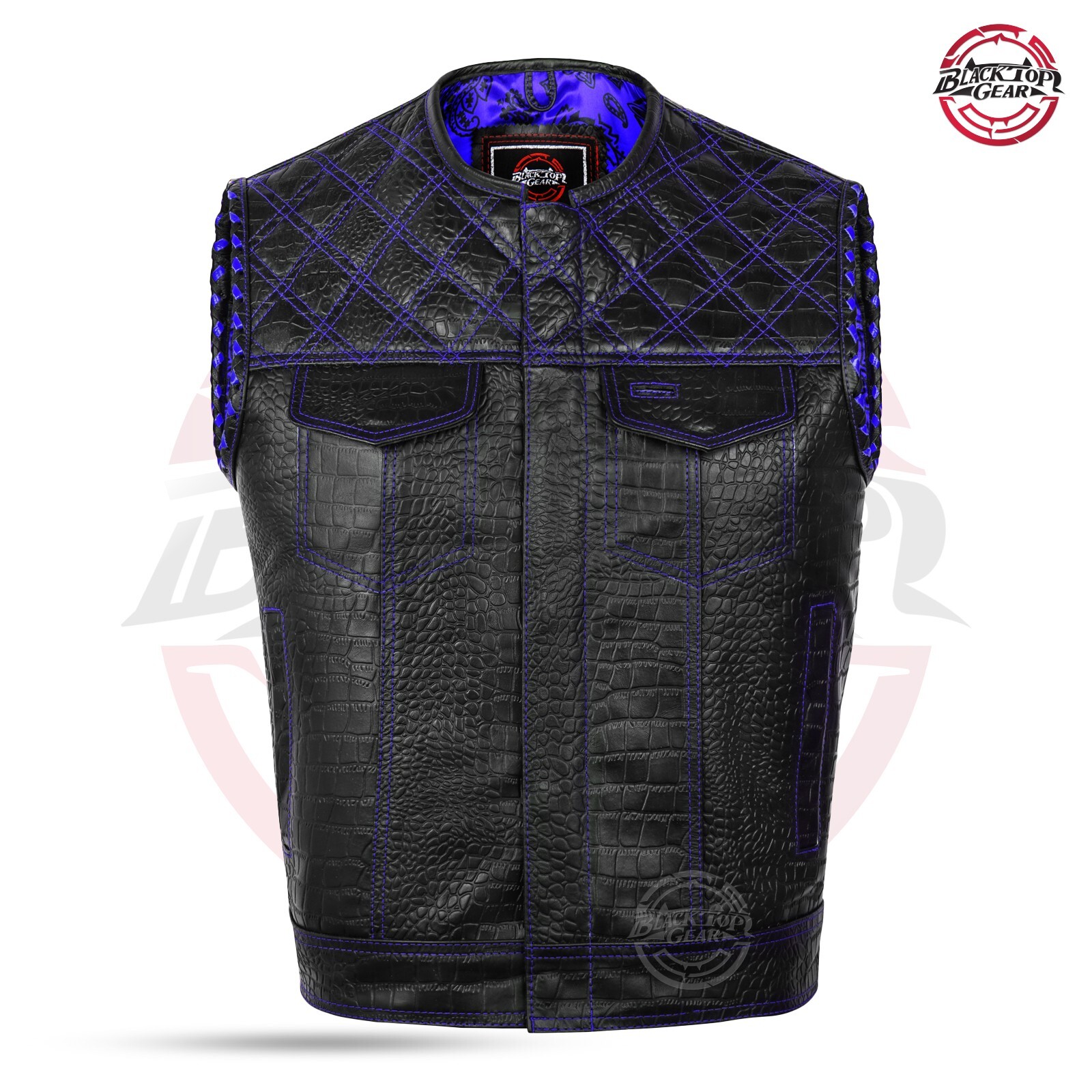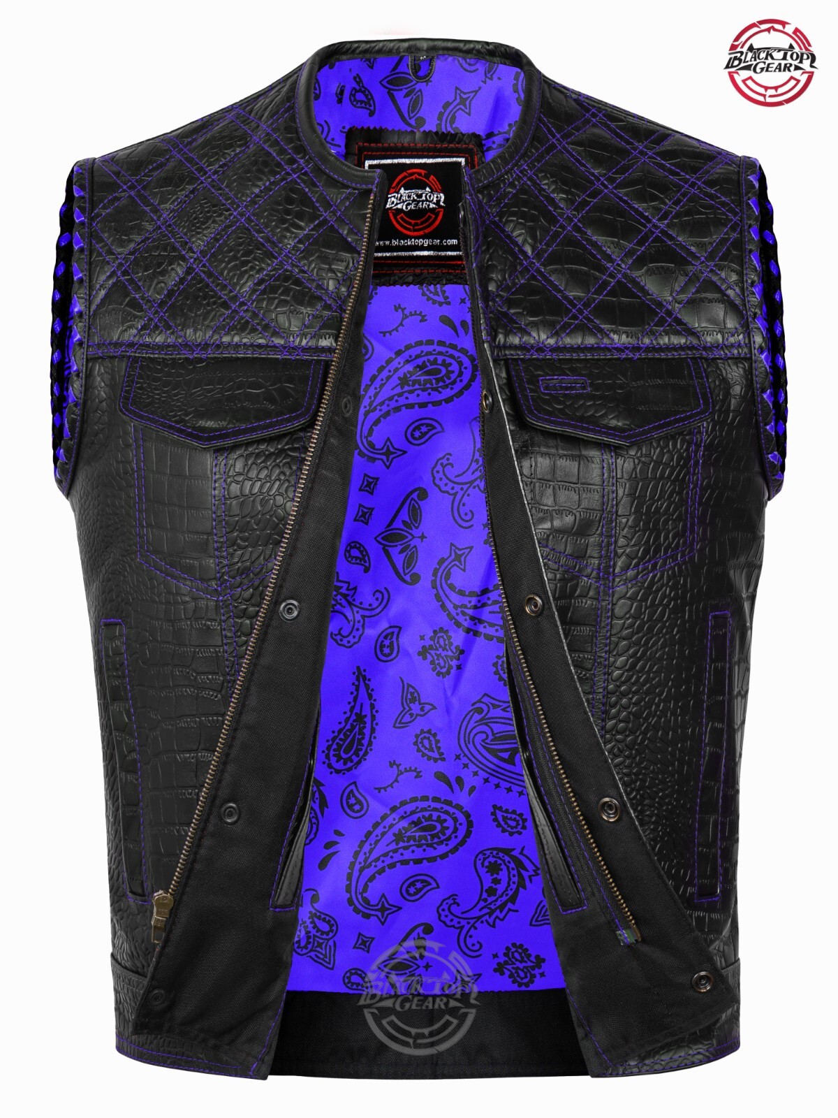 Men's Genuine Black Leather Vest Blue Diamond Paisley Lining Conceal Carry