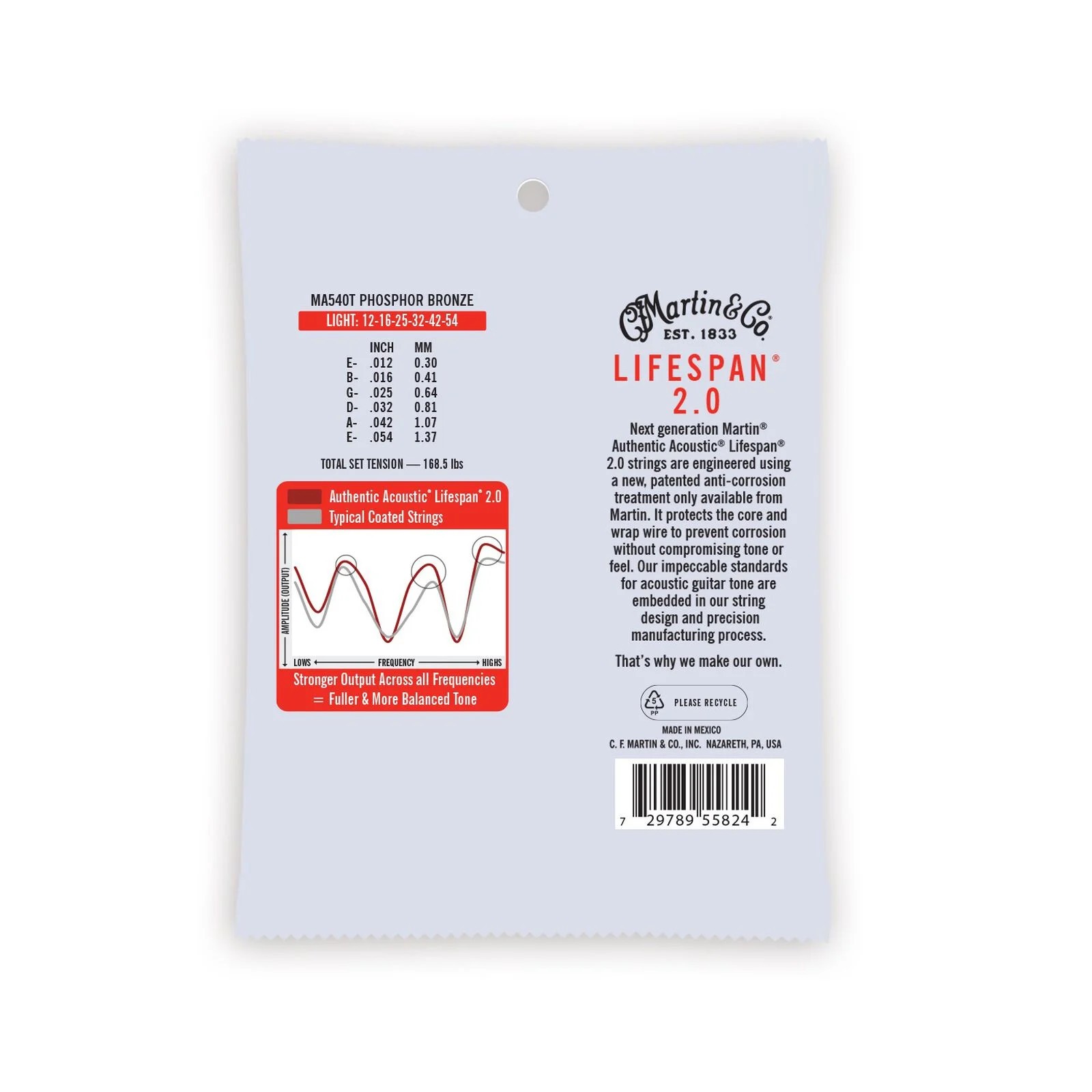 Martin MA540T Authentic Lifespan 2.0 Light Coated PB A/G Strings, 12-54