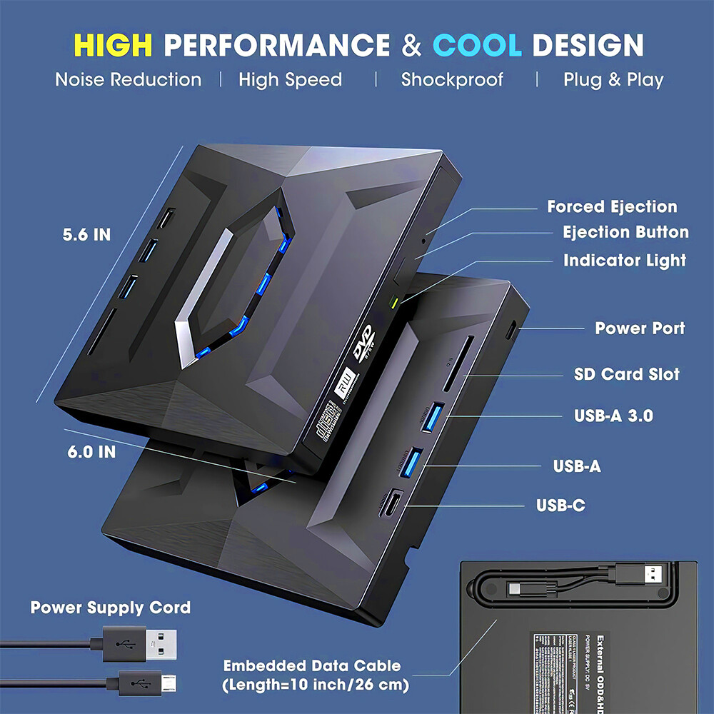 External CD DVD Drive for PC Laptop Windows 11 10 USB 3.0 Burner Reader Writer