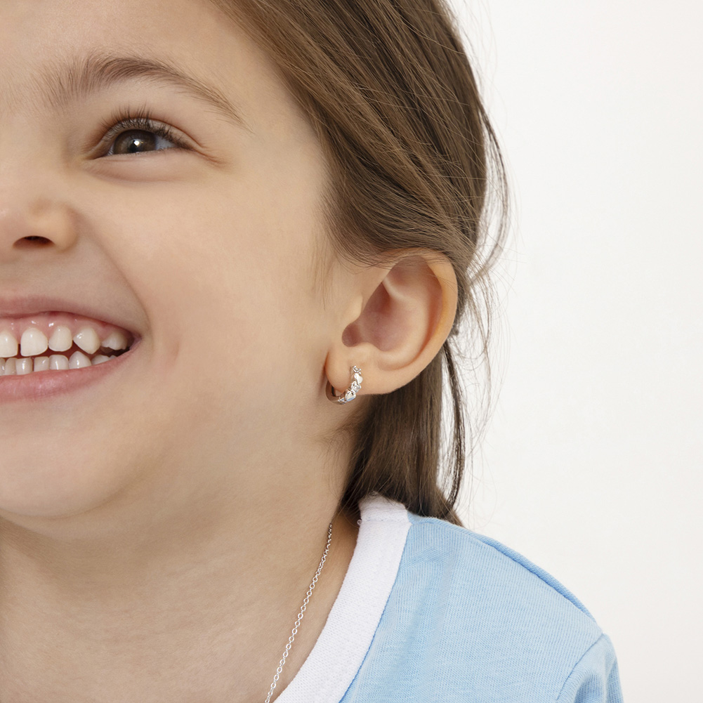 как выглядит Heart CZ 9mm Kids / Girls Earrings Hoop with Safety Latch - Sterling Silver фото