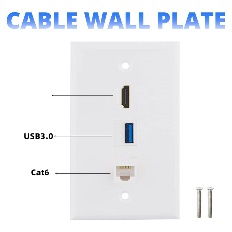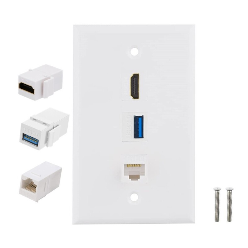 Multiple Interfaces Wall Plate Featuring USB 3.0 and Cat6 RJ45 Support Keystones