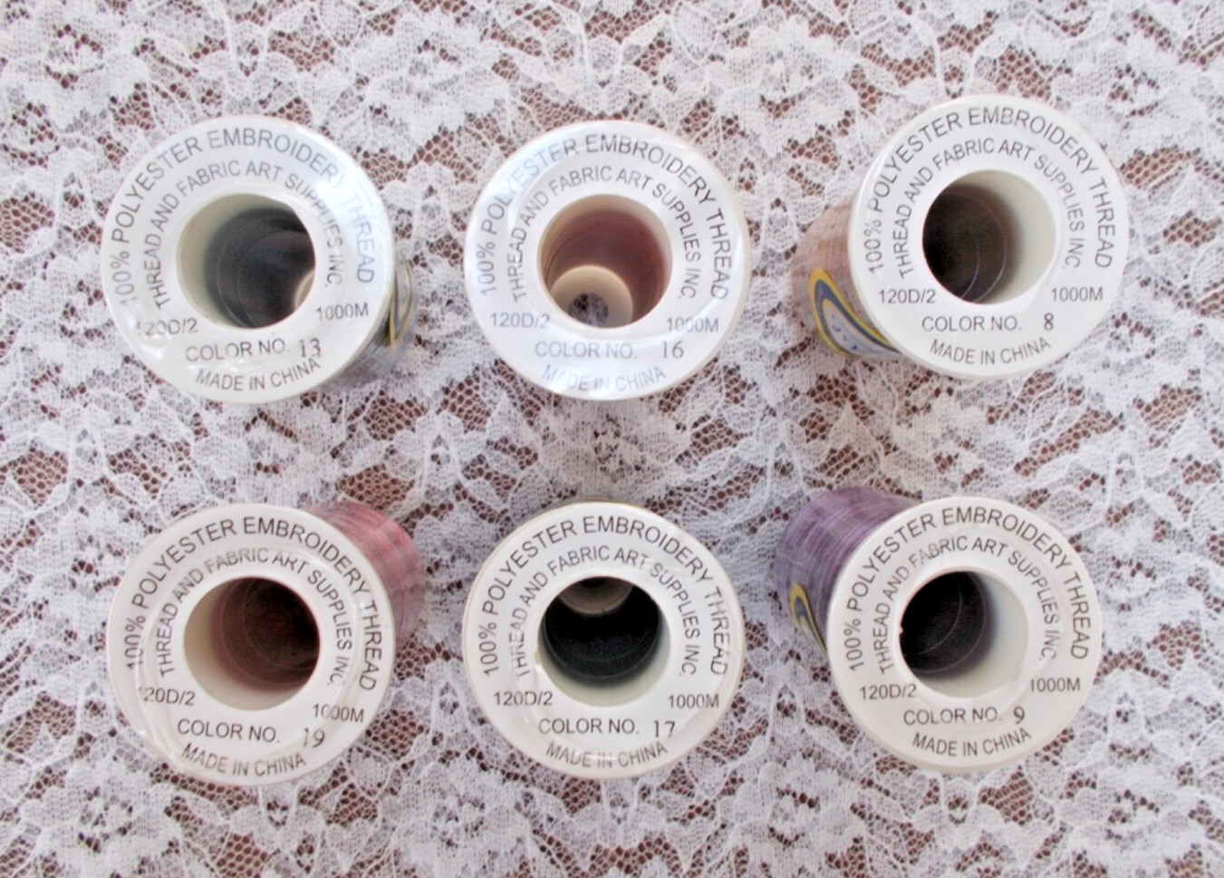 Thread Art Machine Embroidery Thread Lot of 6, Polyester 1000M Spools