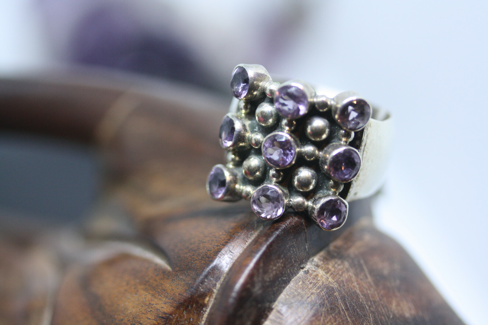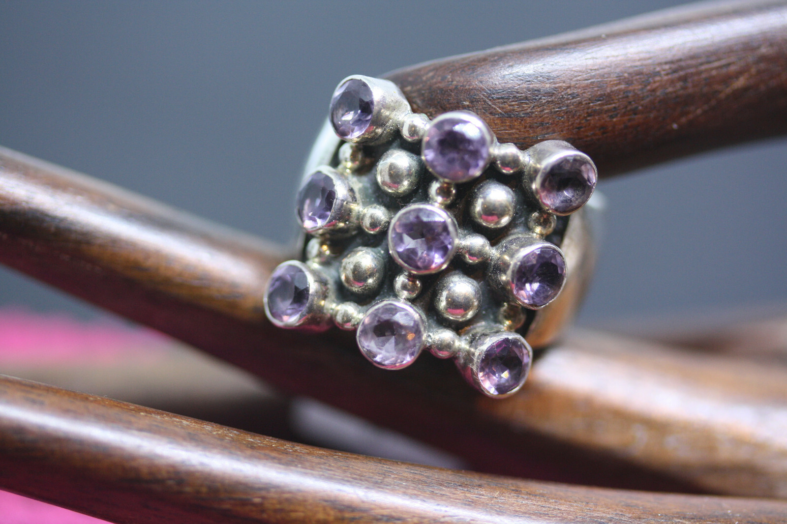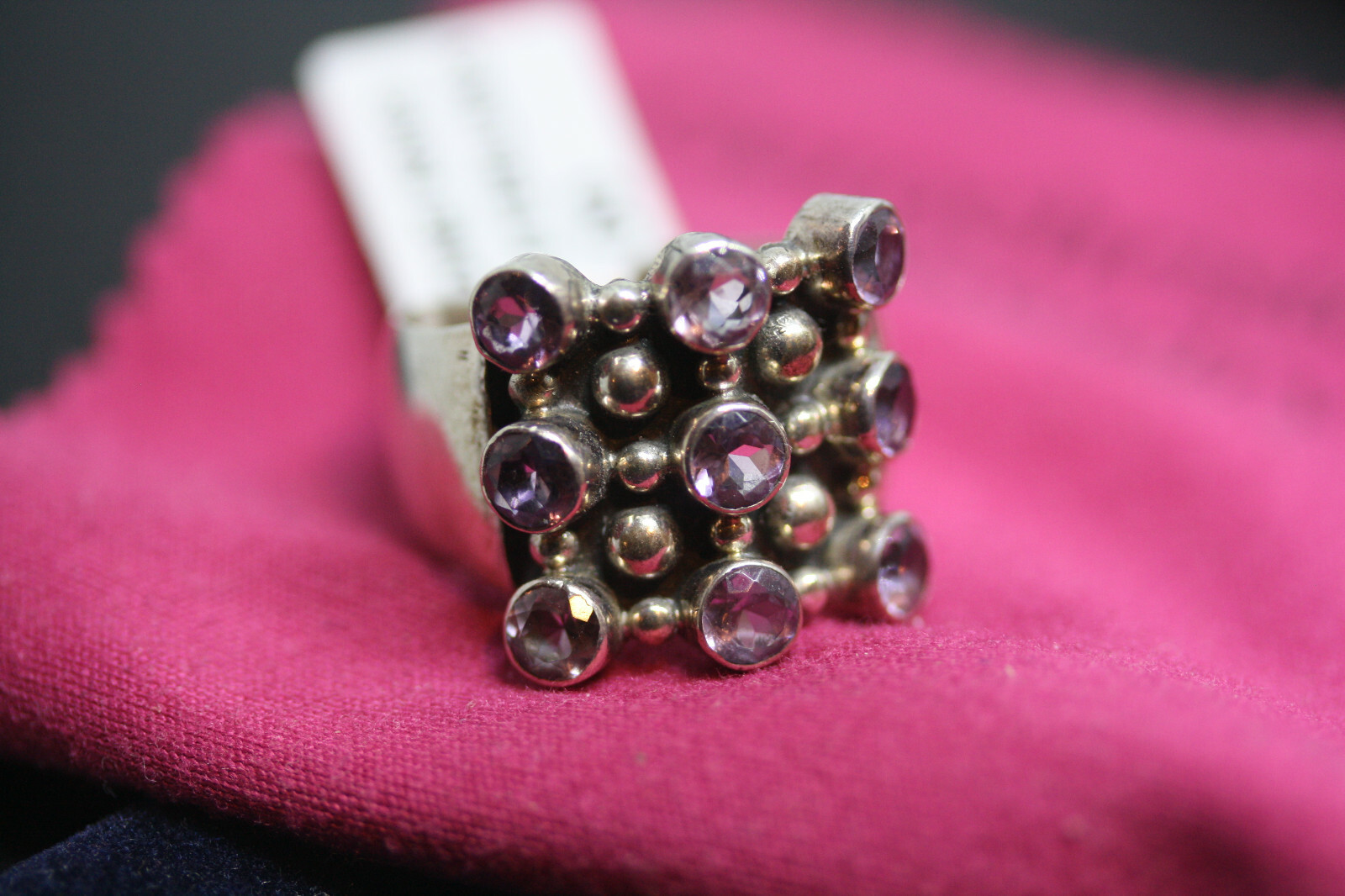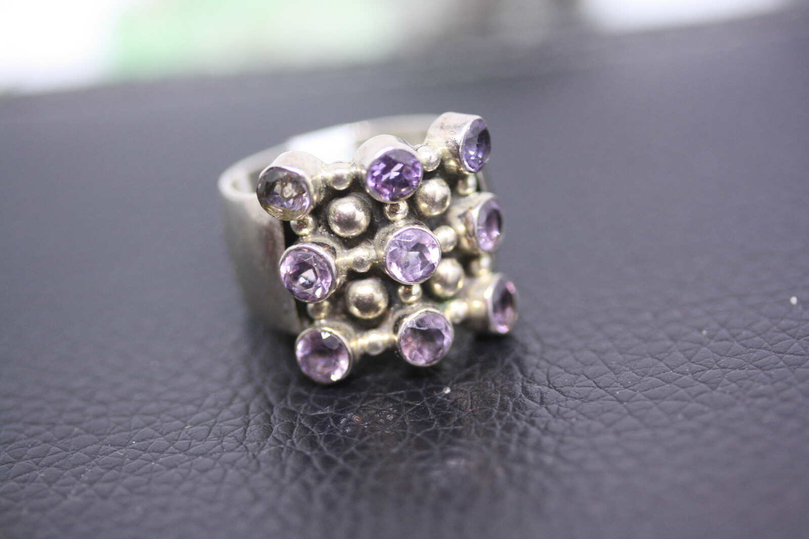 как выглядит Modernist New Womens 3CT Row Amethyst 925 Sterling Silver 18 MM Wide Ring Sz 8 фото