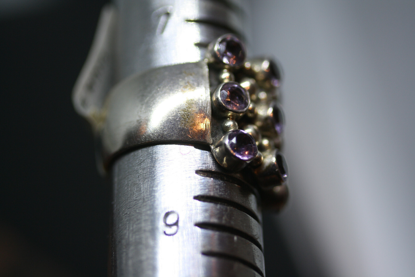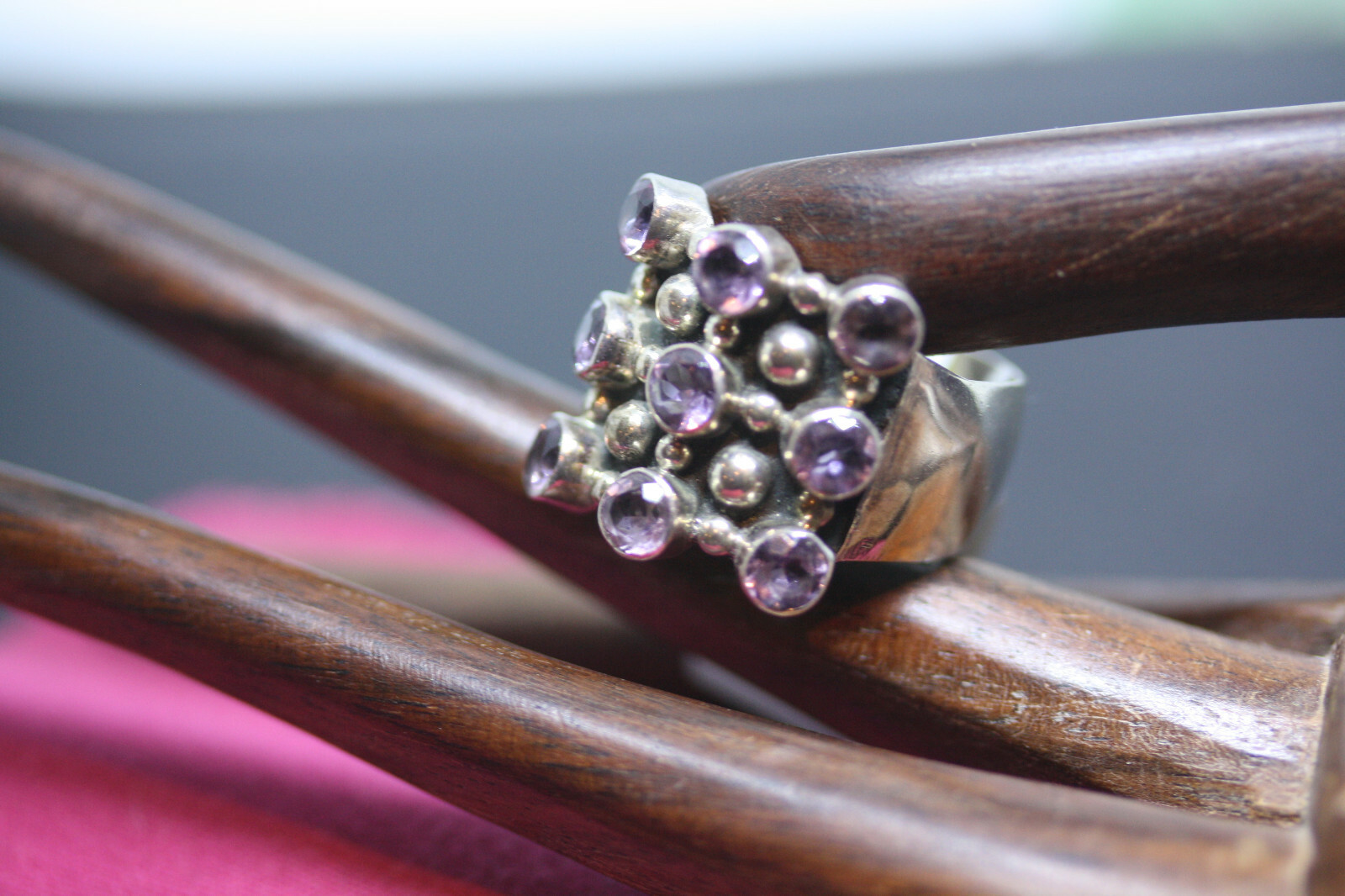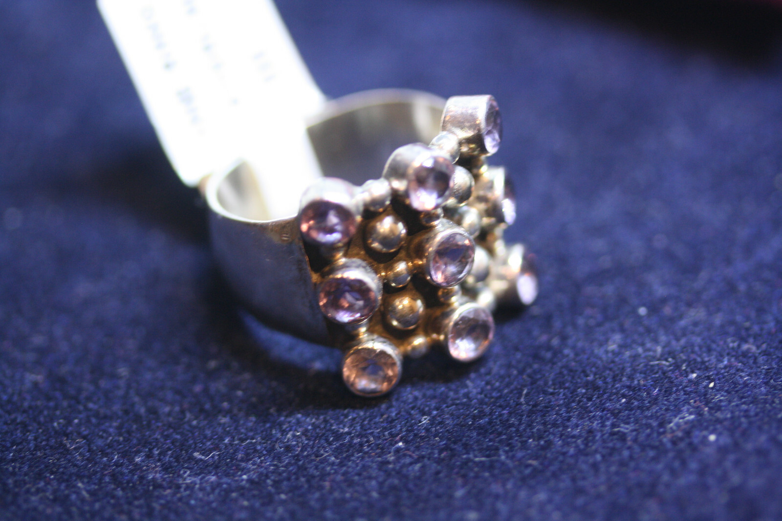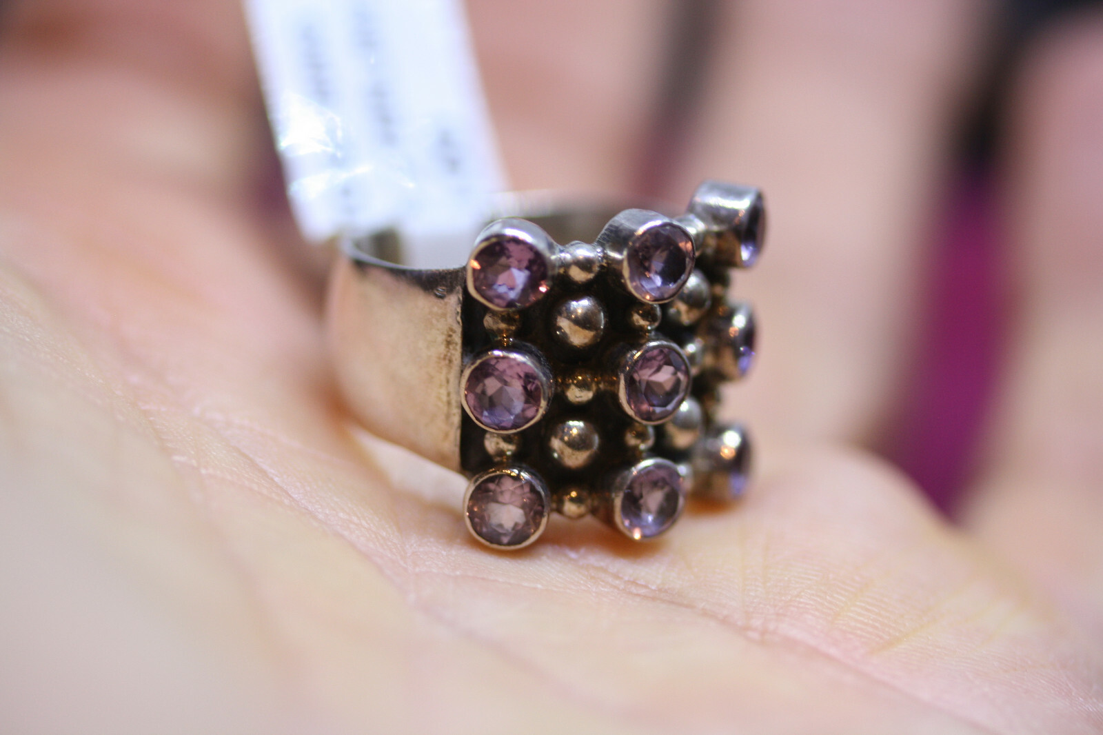 как выглядит Modernist New Womens 3CT Row Amethyst 925 Sterling Silver 18 MM Wide Ring Sz 8 фото