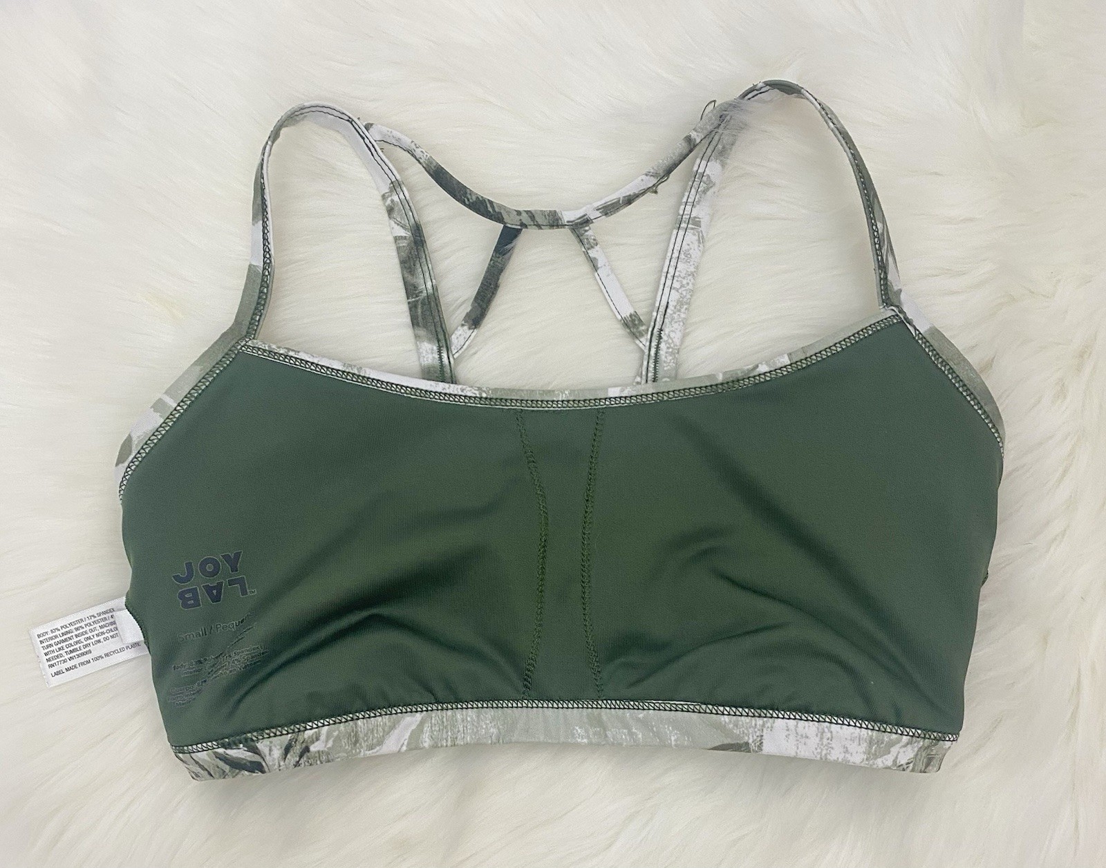 как выглядит FLORAL STRAPPY SPORTS BRA HI-RISE CROSSOVER LEGGINGS SET IN OLIVE фото
