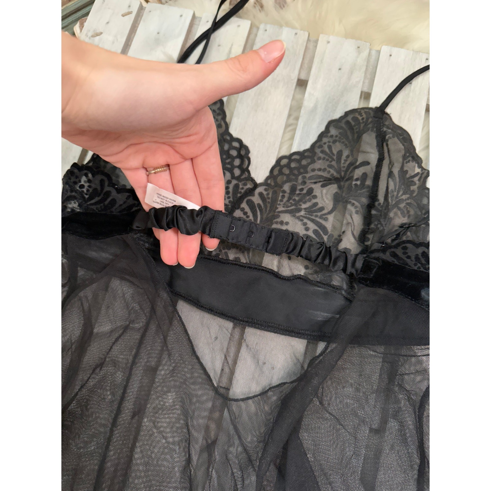 как выглядит Victorias Secret Velvet Bow Sheer Chemise Lingerie Whimsigoth фото