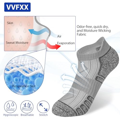 Mens Ankle Socks - 6 Pairs No Show Athletic Running Low Cut Socks 7-9.5 Grey