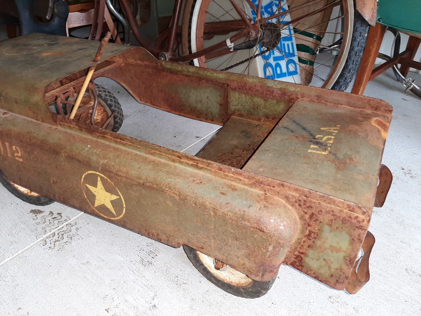 1950s Vintage Hamilton Steel Army Air Force Jeep Pedal Car Steelcraft Garton