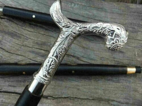 Chrome Derby Curved Head Handle Black Inlay Walking Stick Cane New Handmade Gift