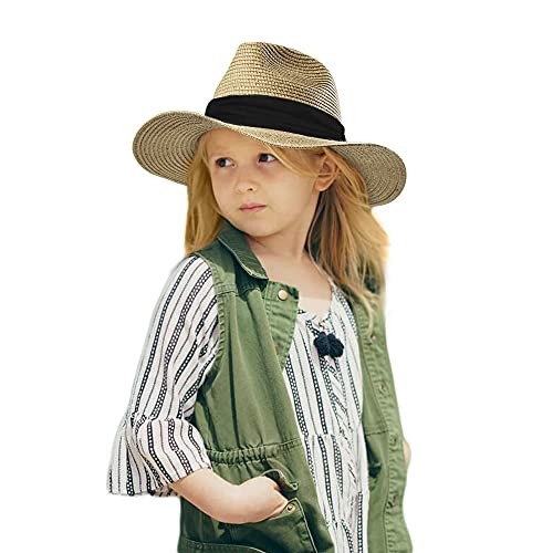Girls Floppy Beach-Hat Wide-Brim - Summer Travel Straw-Sun-Hat for Kids 5 to