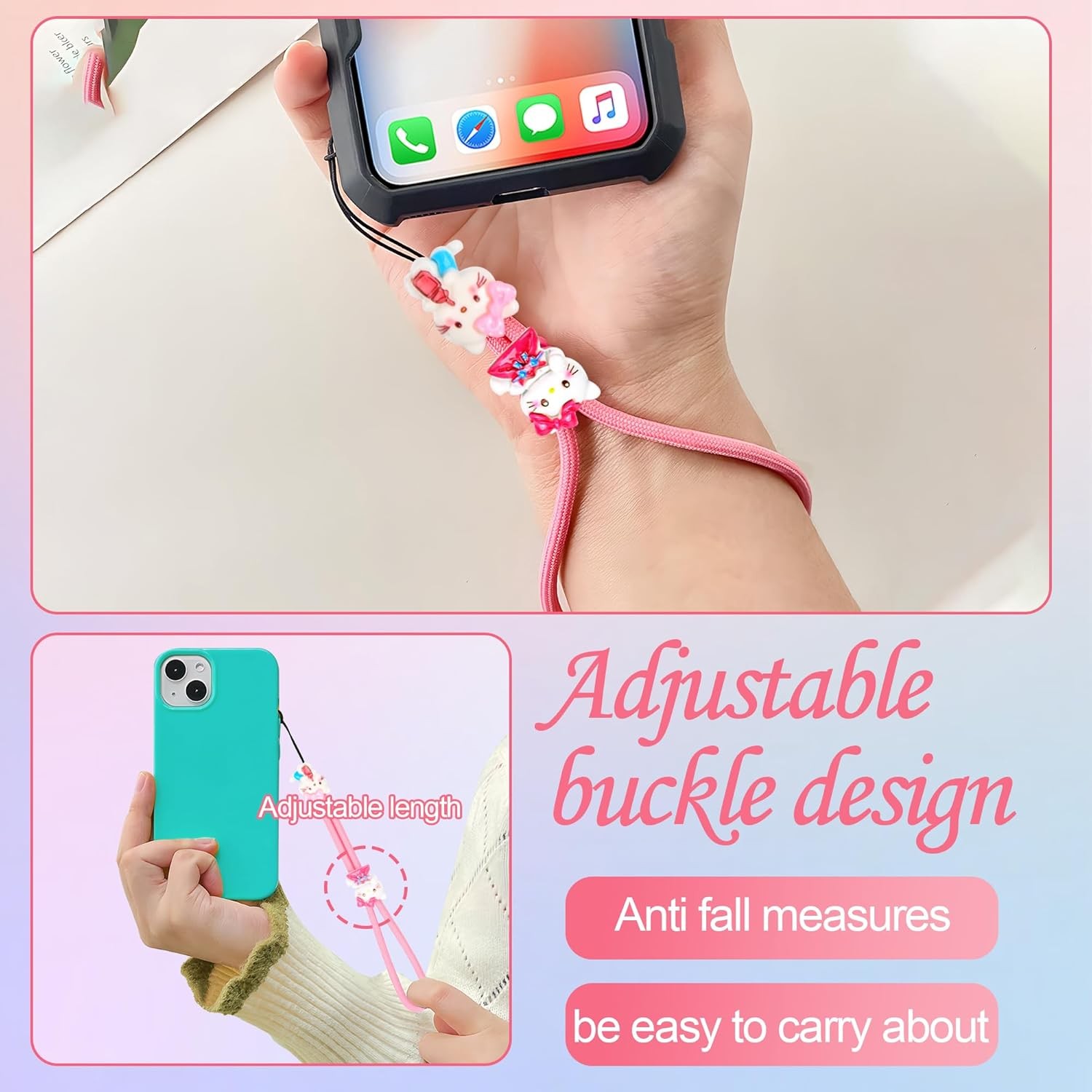 как выглядит Phone Charm Wrist Strap - 4Pcs Adjustable Nylon Wristlet Lanyards with Cute... фото