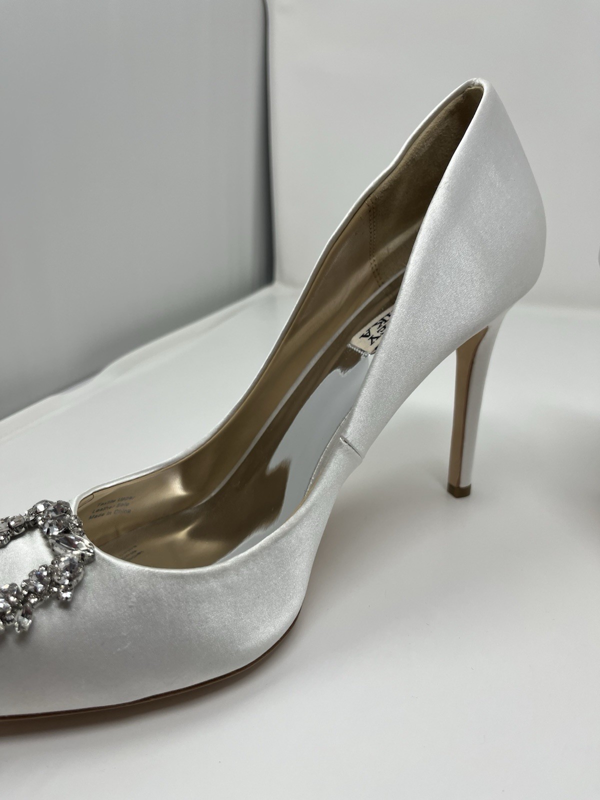 как выглядит 235 MRSP Badgley Mischka - Cher Crystal Embellished Pumps Ivory US 11 фото