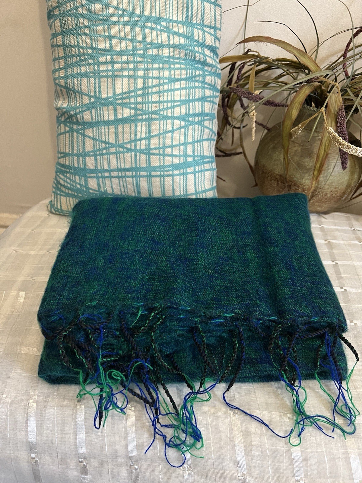 Hand Loomed Himalayan Yak Wool Shawl Scarf Wraps Emerald Color